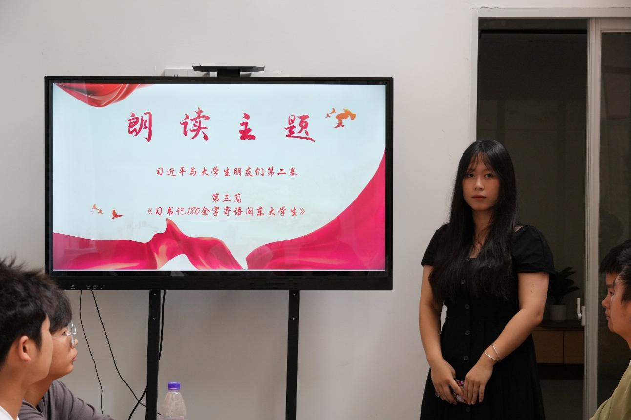 分享會上,2023級市政工程技術(shù)2班團(tuán)支書許琳,領(lǐng)學(xué)朗讀了,《習(xí)近平與大學(xué)生朋友們》第二卷第三篇《習(xí)書記180余字寄語閩東大學(xué)生》,從中深切地感受到了習(xí)近平總書記對于基層工作的極度關(guān)注以及他對年輕學(xué)生們的深深關(guān)懷。