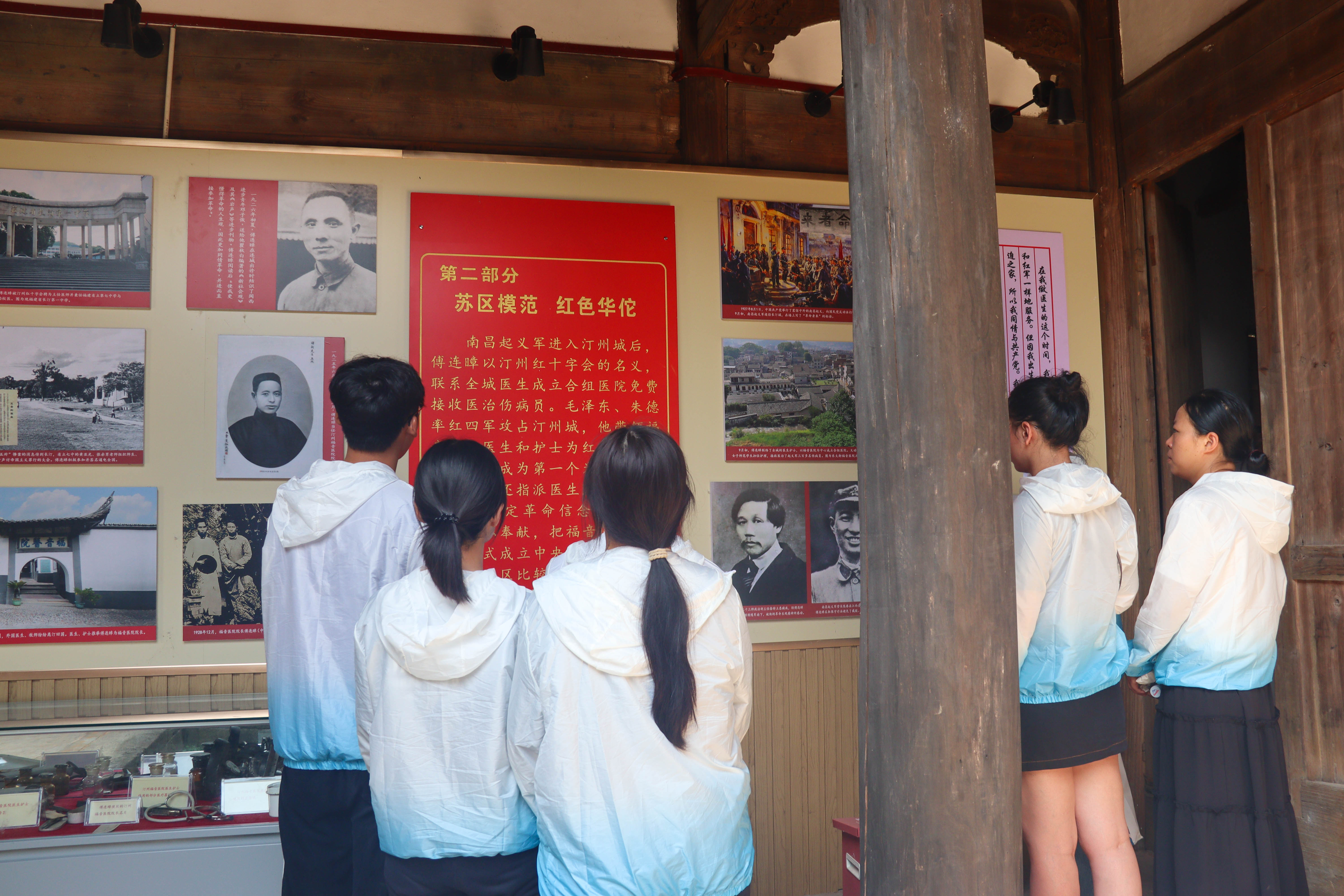 圖2:實(shí)踐團(tuán)師生在傅連璋故居學(xué)習(xí)紅醫(yī)精神