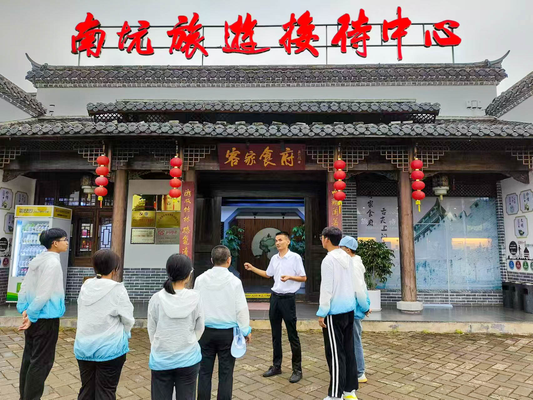 圖14:實(shí)踐團(tuán)師生在南坑村新時(shí)代文明服務(wù)實(shí)踐站合影