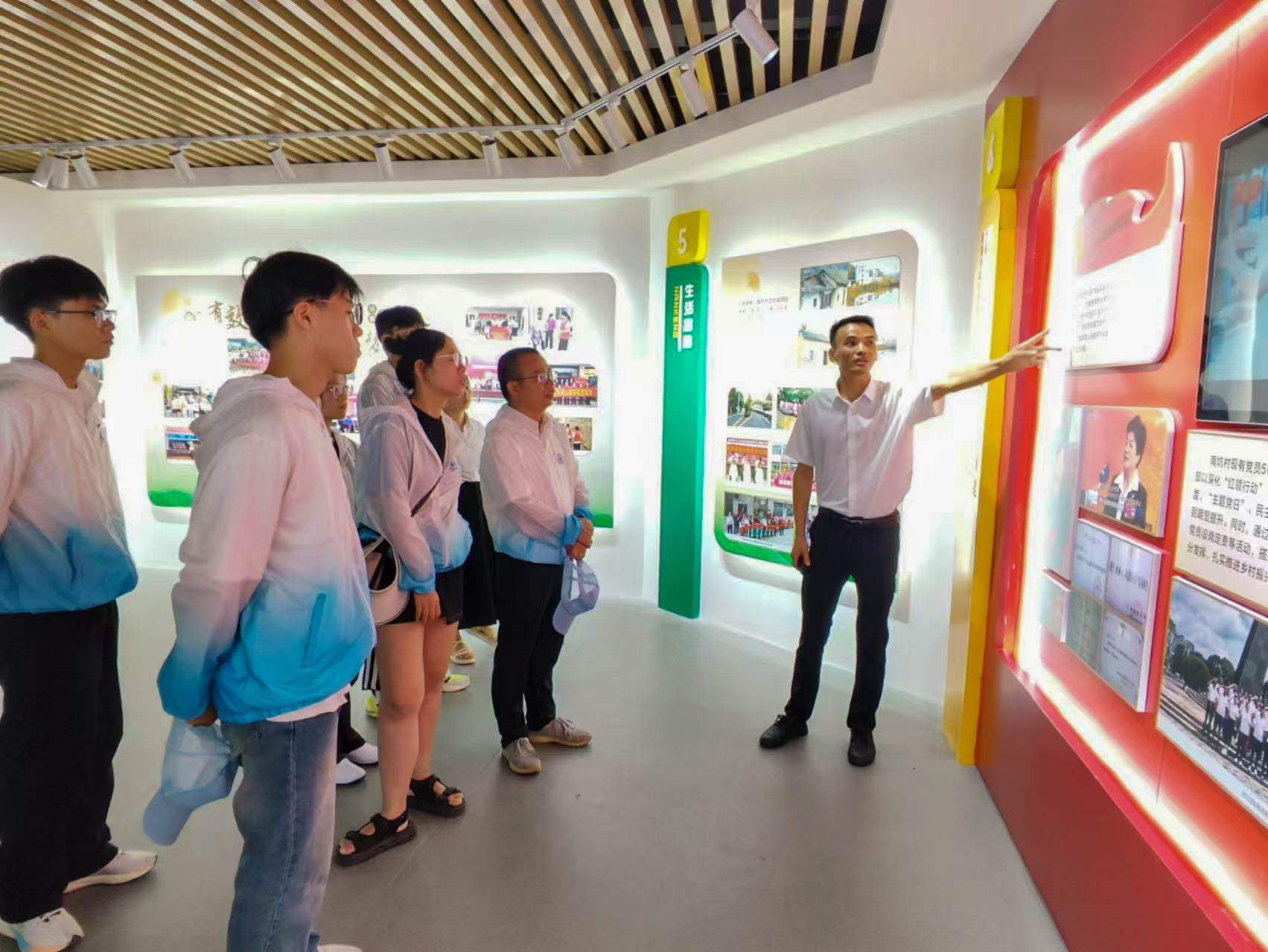 圖11:實(shí)踐團(tuán)師生在南坑村“數(shù)字村史館”學(xué)習(xí)