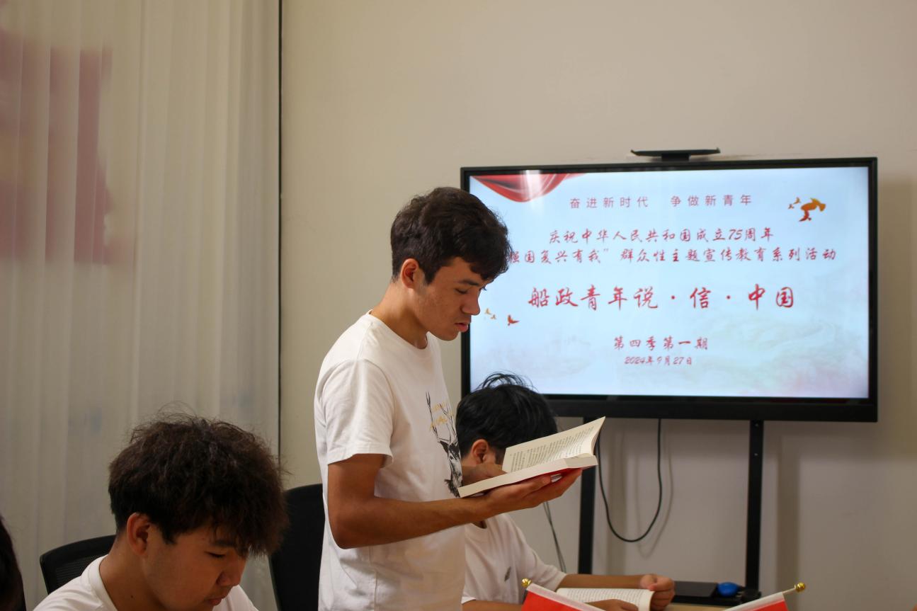 為深入學(xué)習(xí)宣傳貫徹習(xí)近平新時(shí)代中國(guó)特色社會(huì)主義思想和黨的二十屆三中全會(huì)精神,引導(dǎo)青年學(xué)生堅(jiān)定馬克思主義信仰、中國(guó)特色社會(huì)主義信念、中華民族偉大復(fù)興信心,立報(bào)國(guó)強(qiáng)國(guó)大志向、做挺膺擔(dān)當(dāng)奮斗者。深入實(shí)施“深學(xué)爭(zhēng)優(yōu)、敢為爭(zhēng)先、實(shí)干爭(zhēng)效”行動(dòng),2024年9月26日晚上,《船政青年說(shuō)·信·中國(guó)》第四季第一期線下分享會(huì)暨慶祝中華人民共和國(guó)成立75周年“強(qiáng)國(guó)復(fù)興有我”群眾性主題宣傳教育系列活動(dòng)在福航園“一站式”學(xué)生社區(qū)服務(wù)大廳思政引領(lǐng)室舉行。