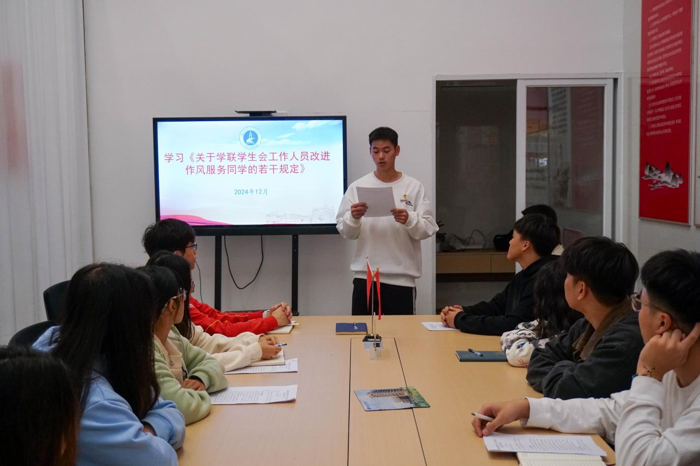 學生會主席團成員張建峰領(lǐng)學了《關(guān)于學聯(lián)學生會工作人員改進作風服務(wù)同學的若干規(guī)定》,學員們表示應當時刻抓準“學生”的站位,承擔起“干部”的責任,積極發(fā)揚謙虛謹慎的作風,把難事辦妥、辦穩(wěn),把小事辦實、辦好。
