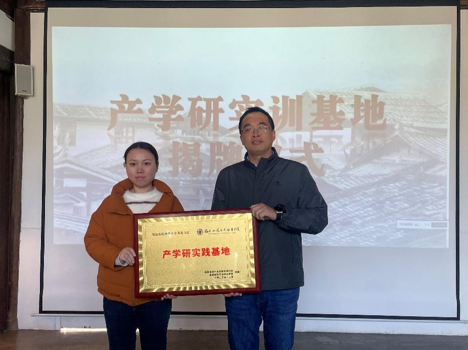 隨后,雙方舉行了簽約儀式與揭牌儀式。永泰縣嵩口鎮(zhèn)組織委員鄢美鳳與土木工程學院朱明栓副院長代表校地雙方簽署合作協(xié)議,并共同為“產(chǎn)學研實訓基地”揭牌。