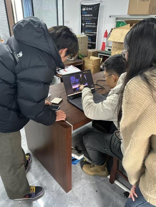 在企業(yè)導師陳平的指導下,專業(yè)學生們熟練操作無人機進行高光譜水質(zhì)監(jiān)測飛行,實施搭載高光譜傳感器的水體數(shù)據(jù)采集。隨后現(xiàn)場進行高光譜數(shù)據(jù)的處理與分析,充分將測繪新技術(shù)應(yīng)用于水保行業(yè)。
