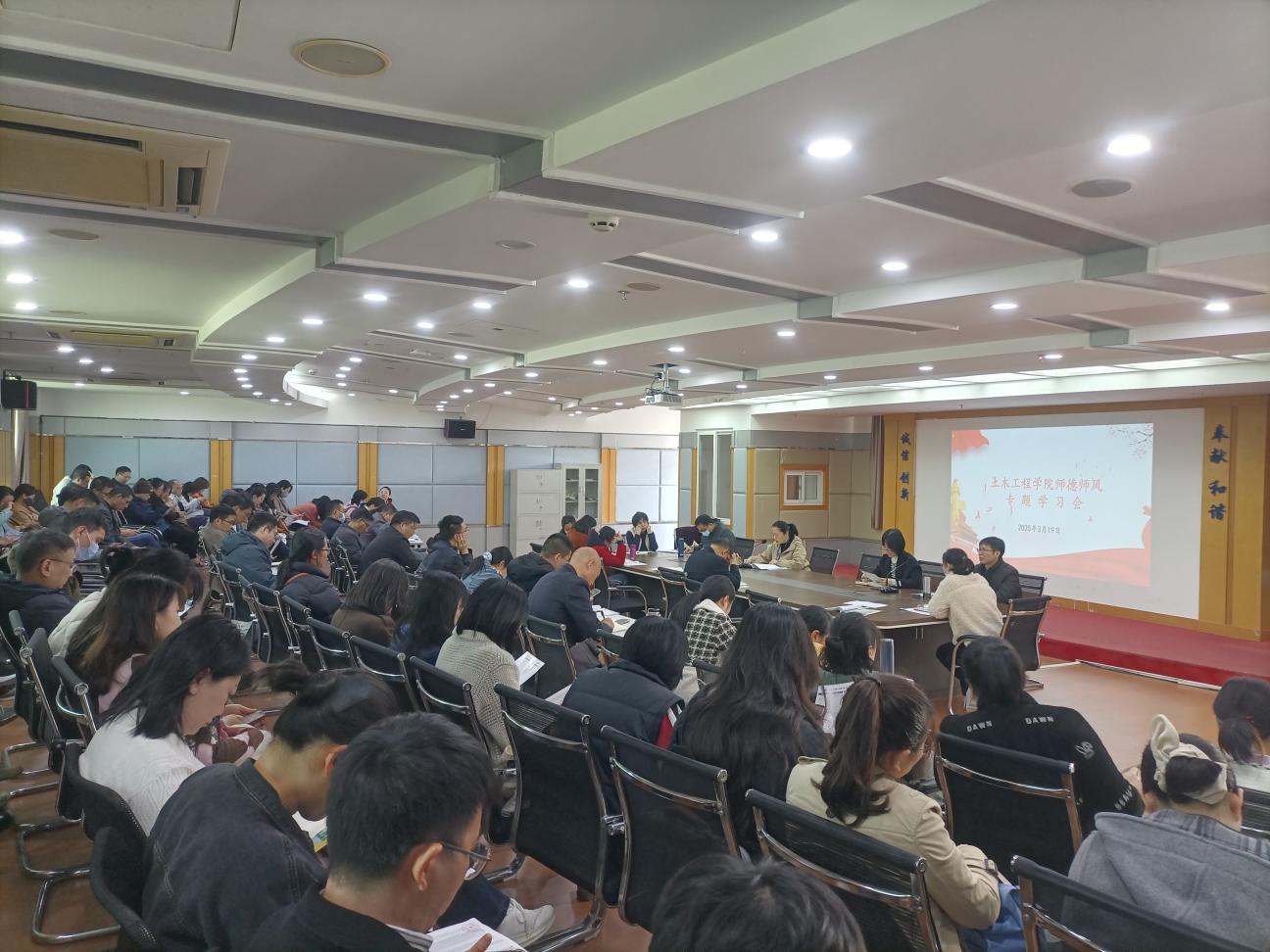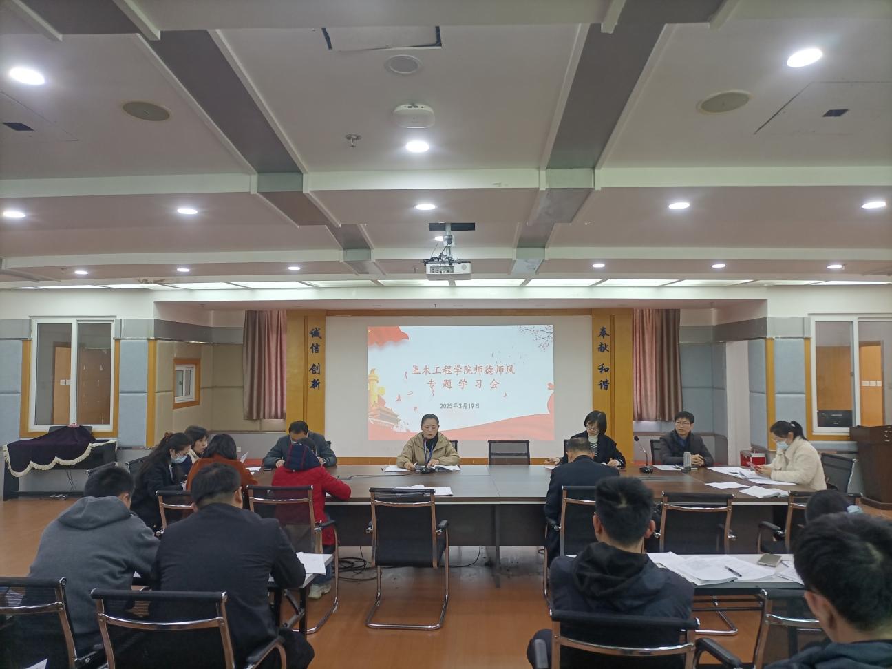 3月19日下午,土木工程學(xué)院在創(chuàng)新樓1007召開(kāi)師德師風(fēng)專(zhuān)題學(xué)習(xí)會(huì)。土木工程學(xué)院全體教職工參加本次會(huì)議,會(huì)議由黨總支副書(shū)記任穎卿同志主持。
