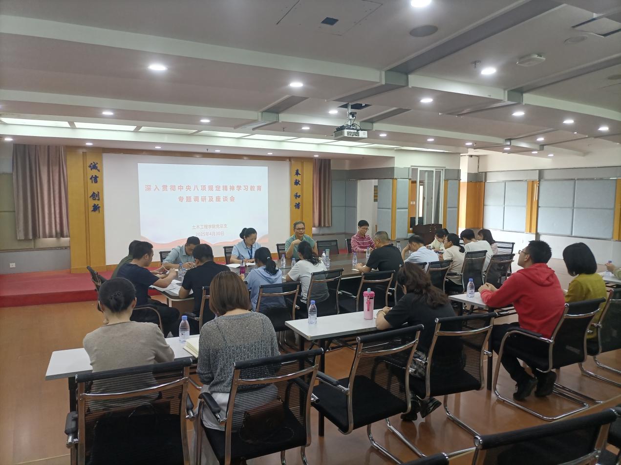4月30日下午,土木工程學(xué)院黨總支書記高杰同志主持召開深入貫徹中央八項規(guī)定精神學(xué)習(xí)教育專題調(diào)研及座談會,深入學(xué)習(xí)貫徹習(xí)近平總書記關(guān)于加強黨的作風(fēng)建設(shè)的重要論述,按照中央和省委部署要求,圍繞貫徹中央八項規(guī)定及其實施細則精神和我省實施辦法,聽取相關(guān)教師代表對學(xué)院以及黨員領(lǐng)導(dǎo)干部的意見建議。