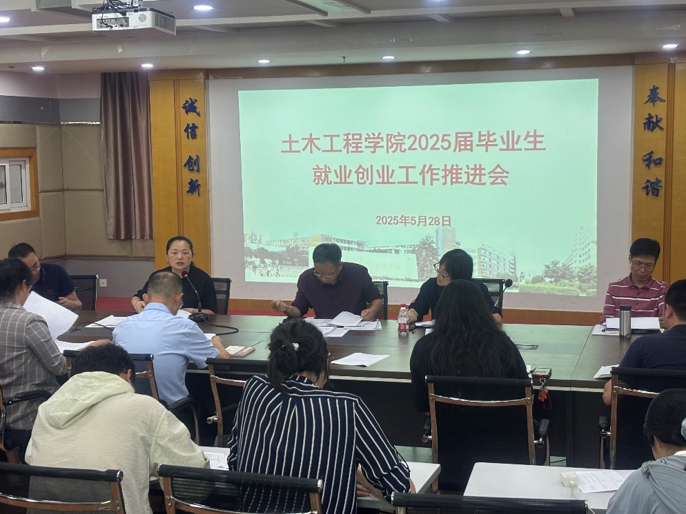 為深入貫徹落實(shí)國家關(guān)于高校畢業(yè)生就業(yè)創(chuàng)業(yè)工作部署,推動(dòng)畢業(yè)生高質(zhì)量充分就業(yè),2025年5月28日,土木工程學(xué)院于福船園創(chuàng)新樓1007召開2025屆畢業(yè)生就業(yè)創(chuàng)業(yè)工作推進(jìn)會(huì)。學(xué)院領(lǐng)導(dǎo)班子、各教研室主任、畢業(yè)班輔導(dǎo)員及頂崗實(shí)習(xí)指導(dǎo)老師參會(huì),會(huì)議由黨總支副書記任穎卿主持。