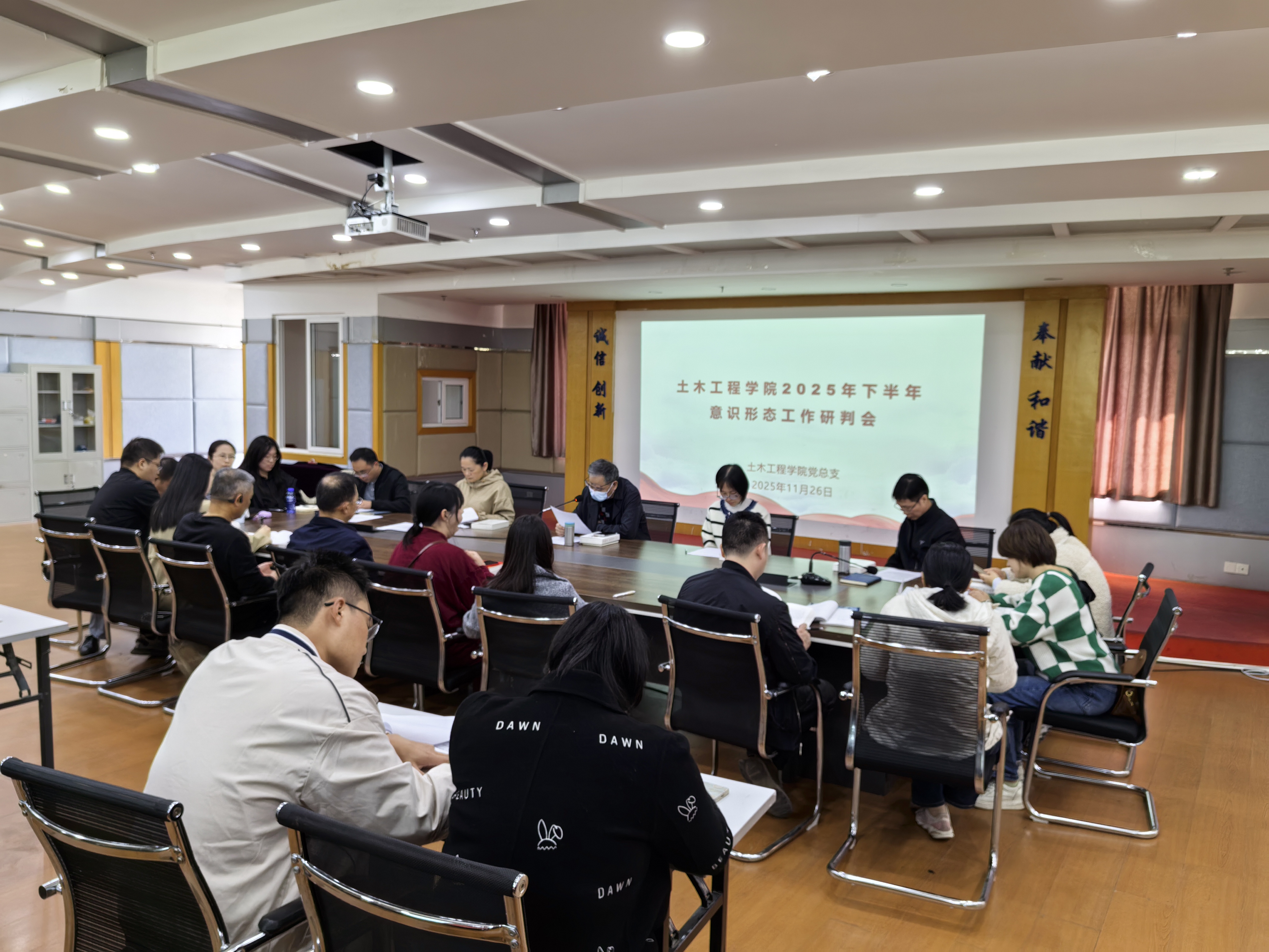 為深入學習貫徹習近平總書記關于意識形態(tài)工作的重要論述精神,筑牢校園安全穩(wěn)定防線,2025年11月26日,土木工程學院在創(chuàng)新樓1007召開2025年下半年意識形態(tài)研判會,意識形態(tài)工作領導小組成員、全體輔導員參加,會議由土木工程學院黨總支書記高杰同志主持。