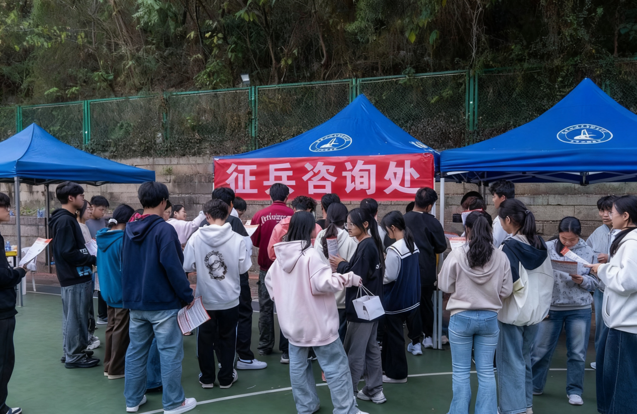 活動現(xiàn)場,志愿者詳細介紹征兵條件、應(yīng)征流程、優(yōu)待政策、職業(yè)發(fā)展等內(nèi)容,為有意向入伍的學(xué)生提供全面的信息支持,有效激發(fā)他們應(yīng)征入伍、獻身國防的熱情,營造“參軍報國,無上光榮”的征兵宣傳氛圍。