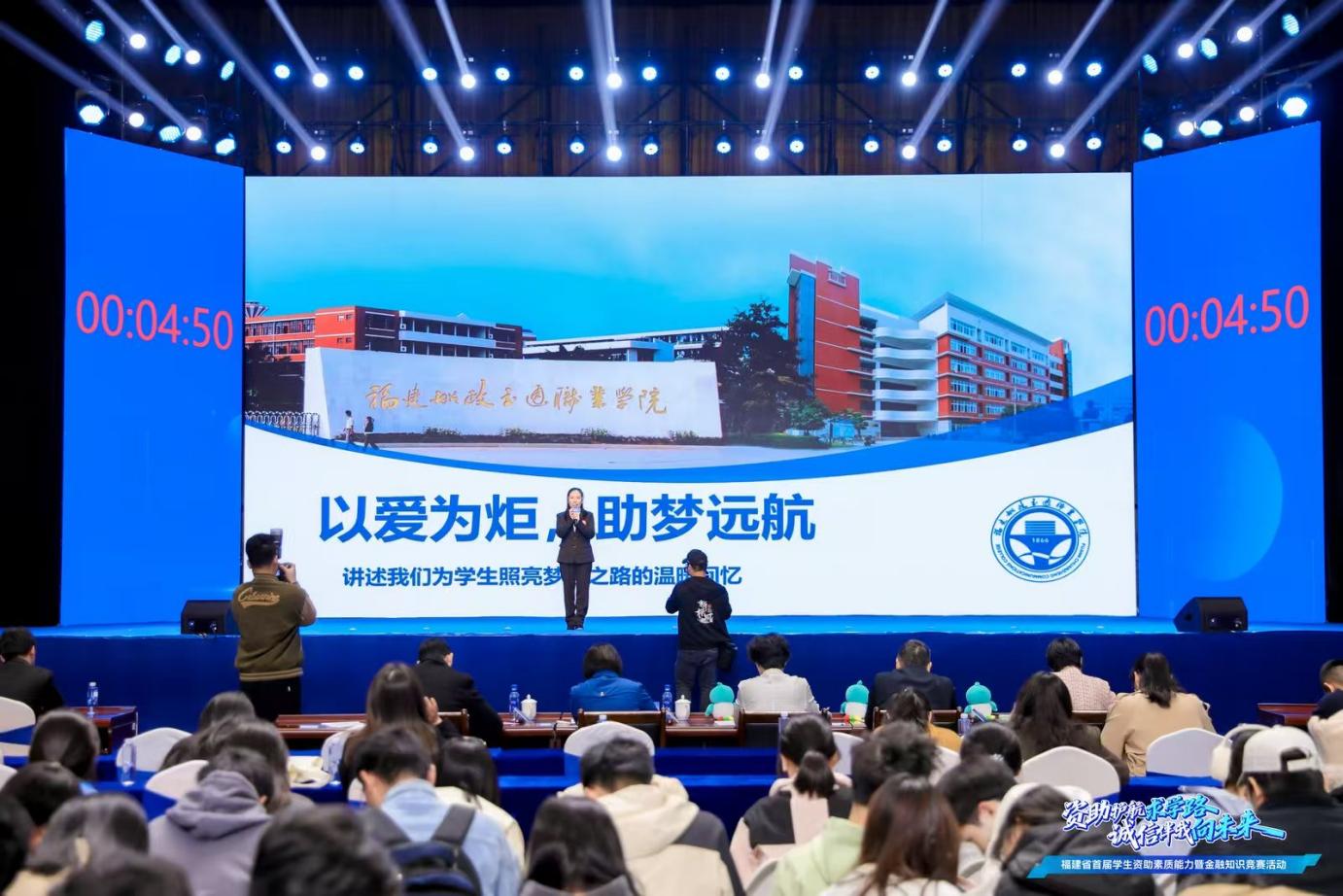 本次大賽歷經(jīng)校級選拔賽、省級初賽、晉級賽和總決賽四個階段,通過設立“必答題”、“搶答題”、“主題演講”、“情景演繹”等多個環(huán)節(jié)全面考察參賽隊伍對學生資助政策、金融知識的掌握程度以及應變能力和團隊協(xié)作能力。