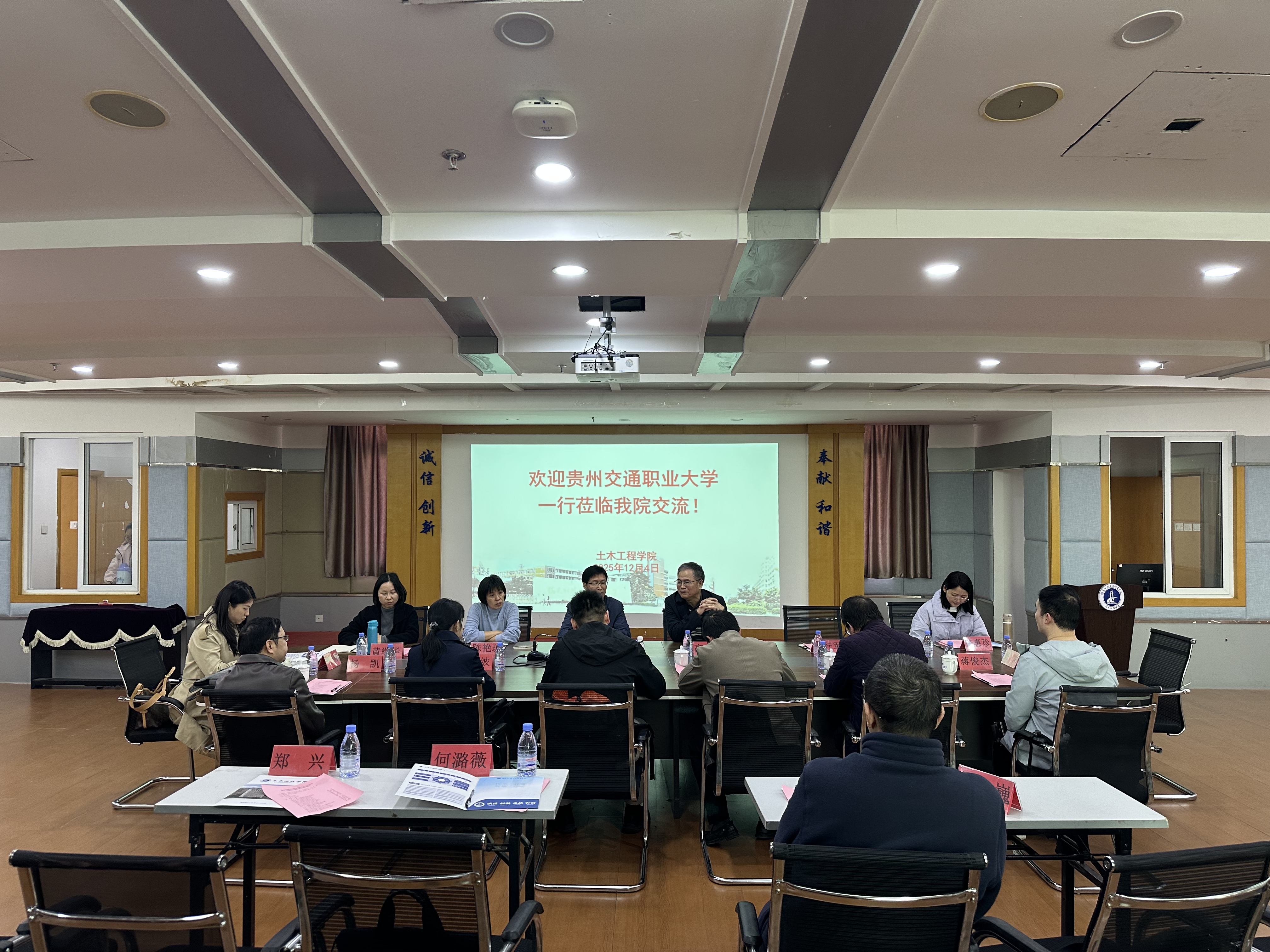 為共探職業(yè)教育高質(zhì)量發(fā)展路徑,2025年12月4日上午,貴州交通職業(yè)大學路橋工程學院、智慧交通學院一行等8人,赴我校土木工程學院開展專業(yè)能力圖譜建設、實訓室建設等調(diào)研交流。院黨總支書記高杰、副院長卓維松及相關專業(yè)骨干教師參加了座談。