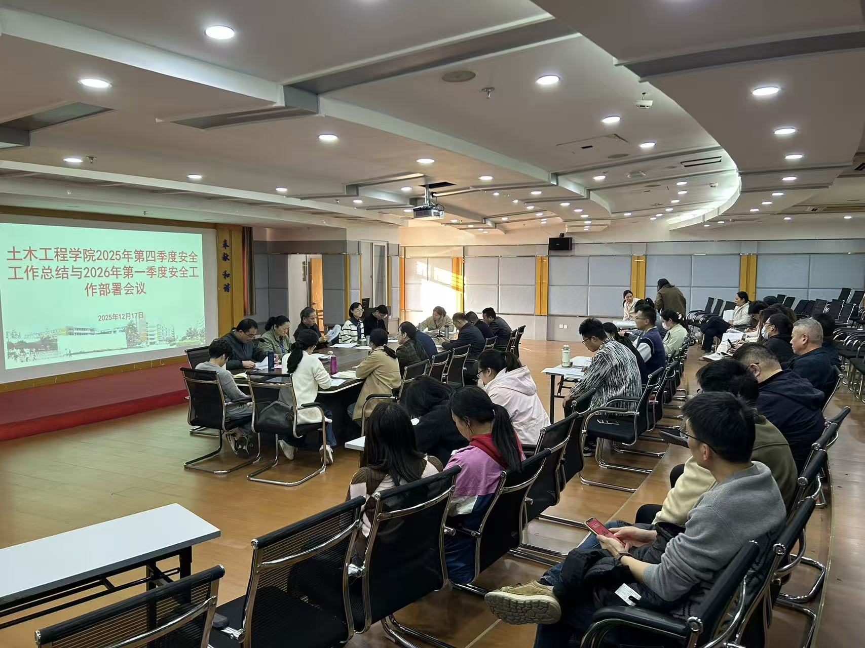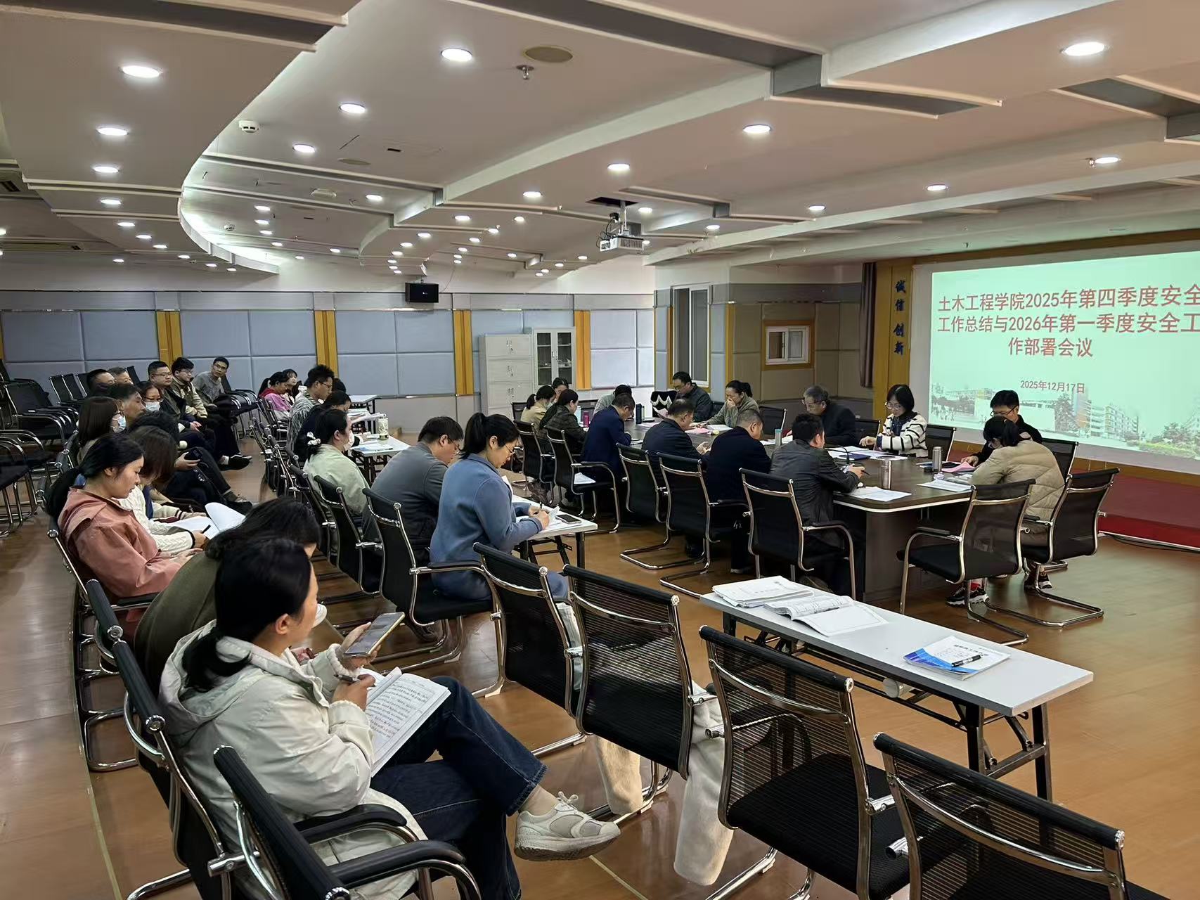 12月17日,土木工程學院在創(chuàng)新樓1007會議室召開2025年第四季度安全工作會議,總結(jié)年度及第四季度安全工作情況,分析當前面臨的安全形勢與風險點,并對歲末年初及下一階段安全重點工作進行部署。學院領(lǐng)導班子成員、組織員、教研室主任、辦公室人員、全體實訓中心成員及輔導員參加會議。會議由土木學院副院長朱明栓主持。
