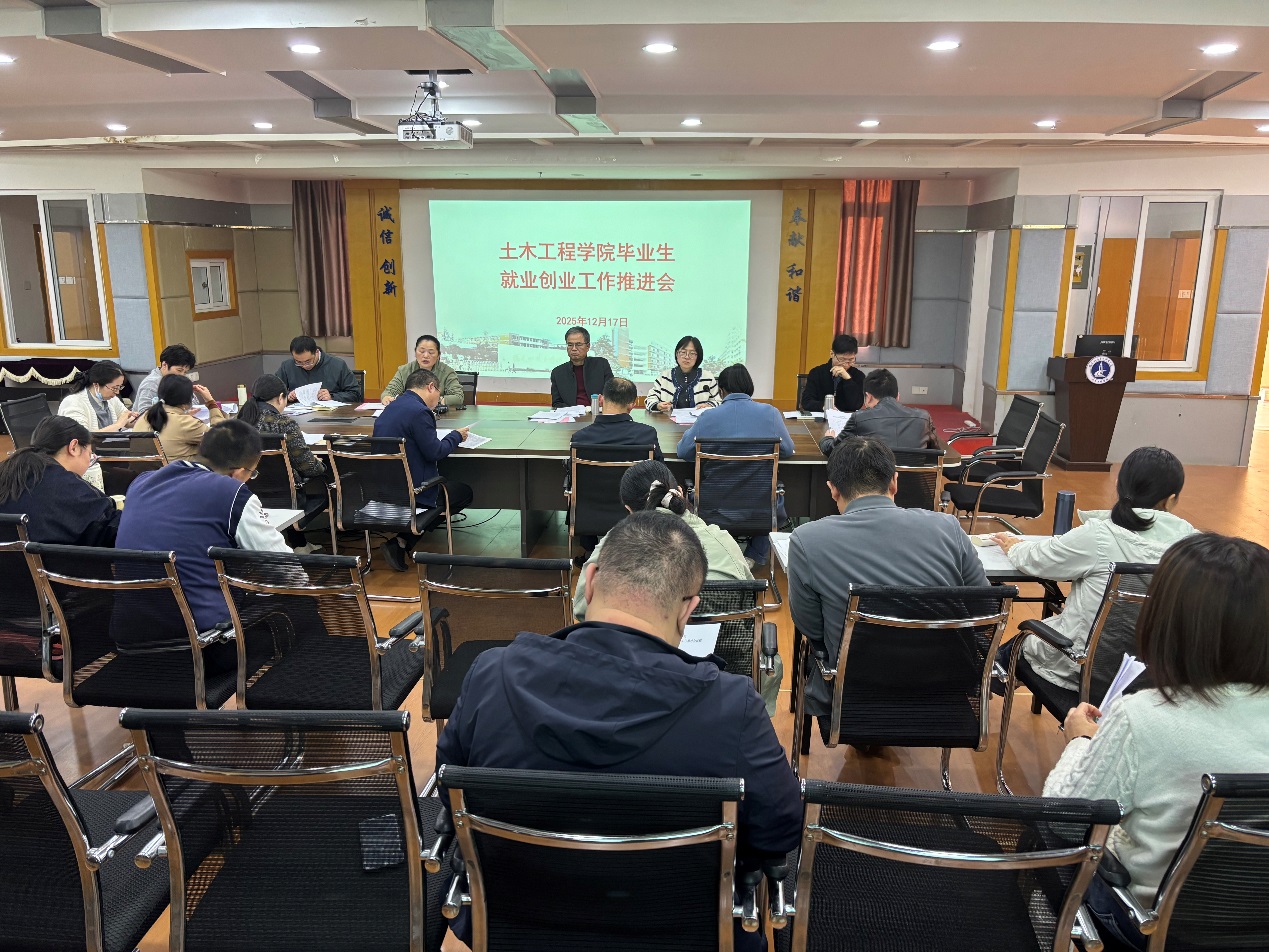 為進(jìn)一步做好2026屆畢業(yè)生就業(yè)創(chuàng)業(yè)工作相關(guān)部署,2025年12月17日,土木工程學(xué)院于創(chuàng)新樓1007會(huì)議室召開2026屆畢業(yè)生就業(yè)創(chuàng)業(yè)工作推進(jìn)會(huì)。學(xué)院領(lǐng)導(dǎo)班子、各教研室主任及全體輔導(dǎo)員參加本次會(huì)議,會(huì)議由黨總支副書記任穎卿主持。