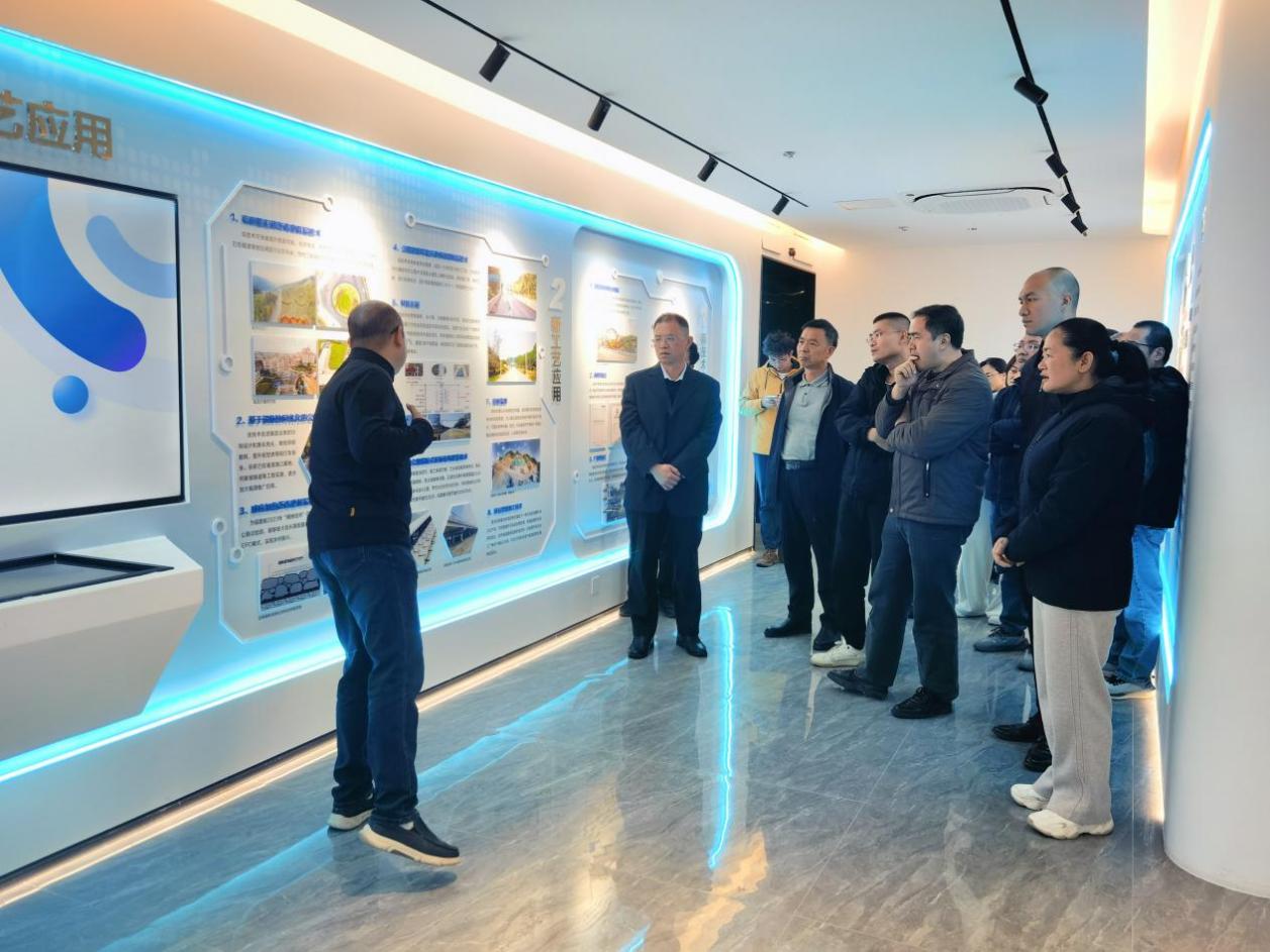 儀式結(jié)束后,全體人員共同參觀了福建省交通科研院有限公司“數(shù)智科技”新技術(shù)、新工藝、新材料展廳長(zhǎng)廊。