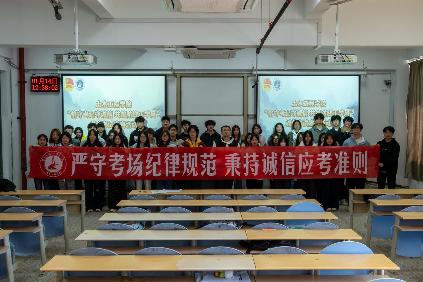 為深耕校園誠(chéng)信文化土壤,培育同學(xué)們的誠(chéng)信自覺(jué)意識(shí),激發(fā)大家踐行誠(chéng)信品德的內(nèi)在動(dòng)力,打造風(fēng)清氣正的校園環(huán)境。2026年1月14日,土木工程學(xué)院于福船園創(chuàng)新樓302舉辦“恪守考紀(jì)守誠(chéng)信 共筑防線正學(xué)風(fēng)”誠(chéng)信考試宣言活動(dòng)。2024級(jí)、2025級(jí)學(xué)生代表參與本次活動(dòng)。