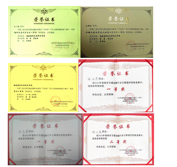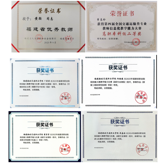 依托國-省-校級科研平臺體系,在教科研上取得豐碩成果。組建多專業(yè)、多技術(shù)集成的科研團隊,在交通基礎(chǔ)設(shè)施安全運維、智慧檢測監(jiān)測、無人機 應(yīng)用、綠色新材料等領(lǐng)域,開展橫縱向科研項目300余項,獲得專利80余件,出版專著2部,編制標(biāo)準(zhǔn)和指南15部,獲福建省科技進步獎2項。連續(xù)6年受福建高速集團委托,完成全省4.5萬公里全路段病害數(shù)據(jù)處理。受省住建廳委托成立福建省鄉(xiāng)村振興服務(wù)中心,開展鄉(xiāng)村工匠培訓(xùn)、古厝保護、農(nóng)村公路拓寬、安全治理等幫扶指導(dǎo)和公益性技術(shù)支援,打造服務(wù)鄉(xiāng)村振興示范樣板;將道橋預(yù)防性養(yǎng)護、智慧運維等科研成果融入專業(yè)教育,建成道路與橋梁工程技術(shù)專業(yè)省級專業(yè)教學(xué)資源庫、省級精品課程20門、出版教材20余部,其中國家規(guī)劃教材6部。堅持“以賽促學(xué)、以賽促教、以賽促改”指導(dǎo)學(xué)生參加各類競賽,獲得國家級獎項34項、省級獎項75項。深化“崗課賽證”融通,探索“崗課”銜接、“課賽”聯(lián)通、“課證”融合機制,實現(xiàn)“崗課賽證”融入專業(yè)人才培養(yǎng)全過程。