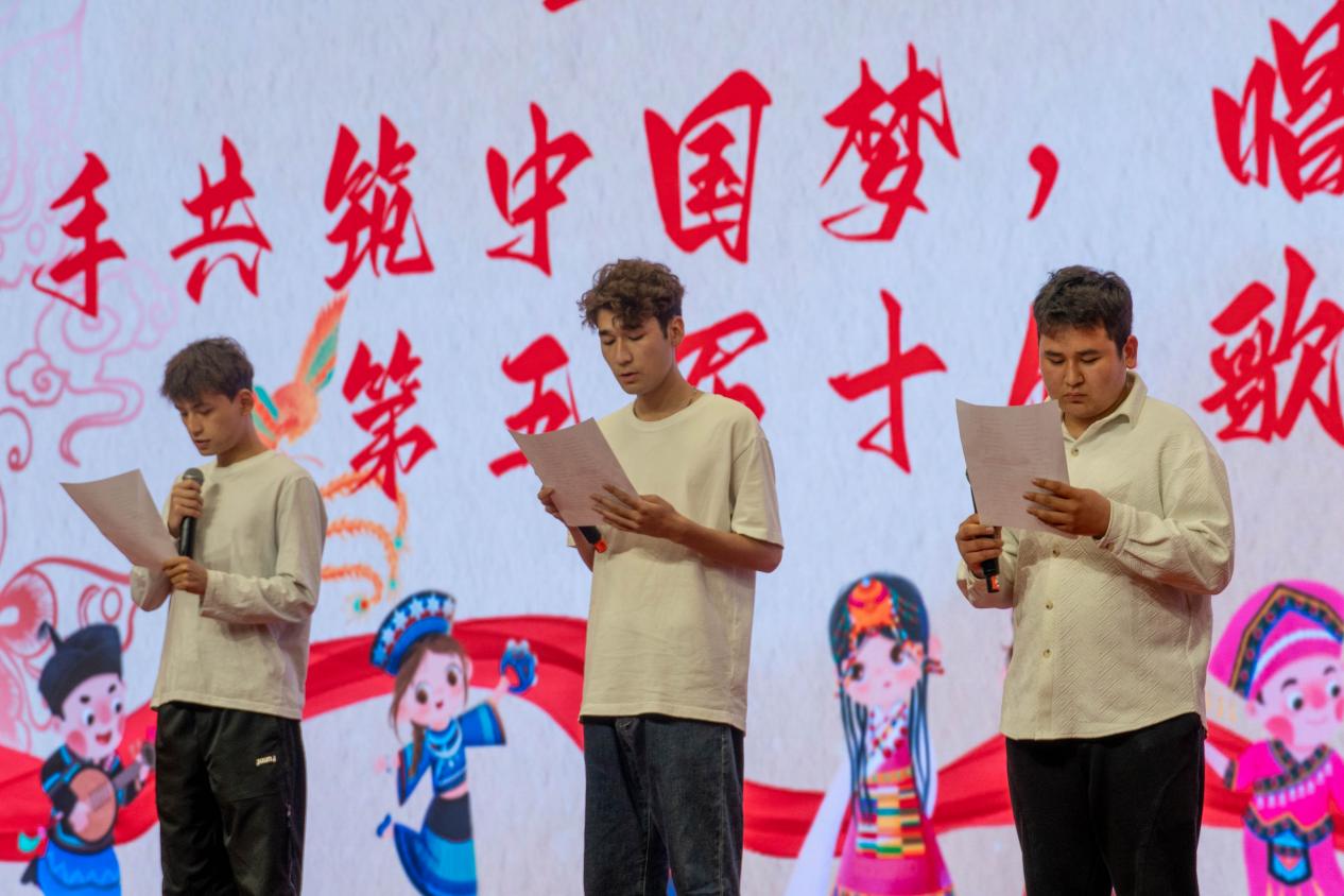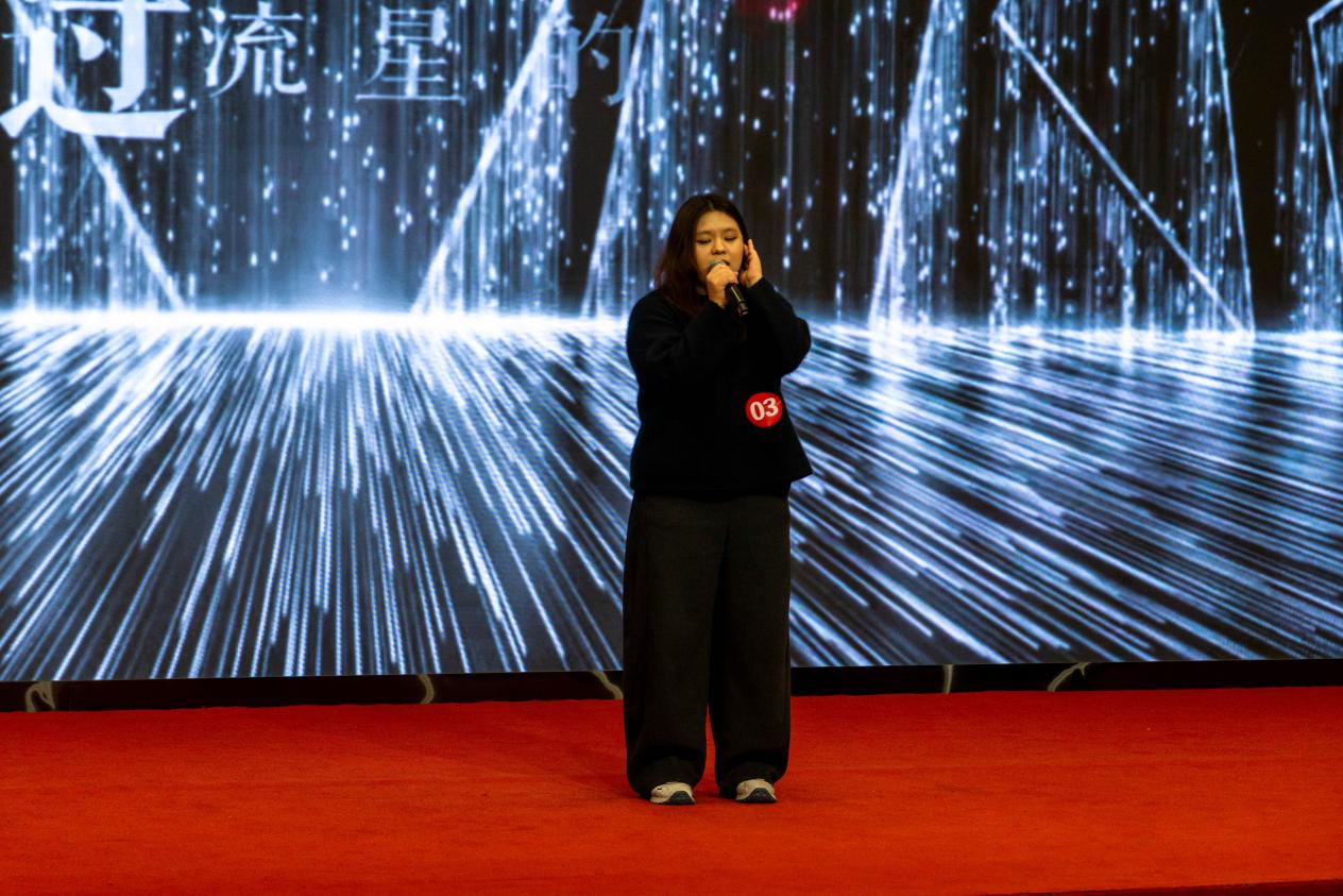 經(jīng)過前期的初賽評(píng)選,共有十位選手晉級(jí)決賽。賽前,三位來自新疆的少數(shù)民族學(xué)子以《同心筑夢(mèng),聚力前行》為題,獻(xiàn)上了一場(chǎng)飽含深情的朗誦表演。比賽時(shí),選手們以不同的音樂風(fēng)格重新演繹經(jīng)典,演唱的每一首歌曲都承載著深厚的民族情感和青年的使命擔(dān)當(dāng),他們的出色表現(xiàn)讓觀眾掌聲雷動(dòng)。比賽間隙設(shè)有抽獎(jiǎng)環(huán)節(jié),增進(jìn)了同學(xué)間的交流互動(dòng)。最終,經(jīng)評(píng)委和大眾評(píng)審共同評(píng)選出十佳歌手的獲獎(jiǎng)排名。