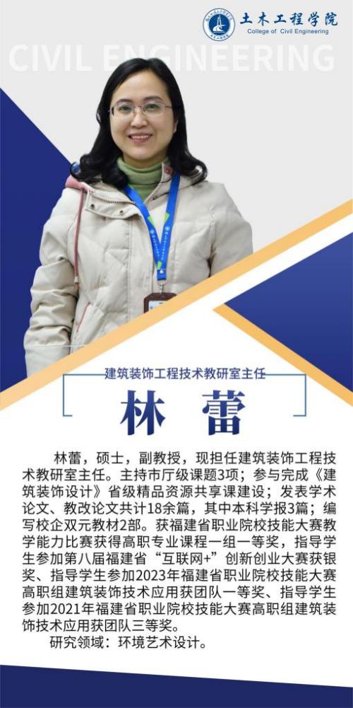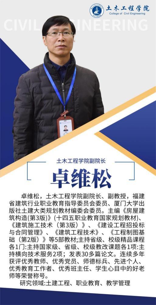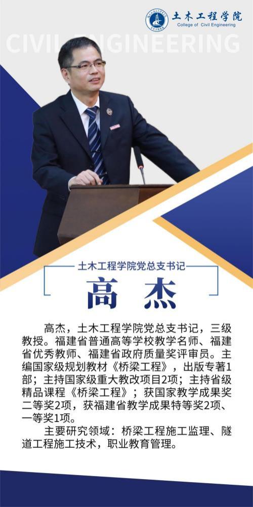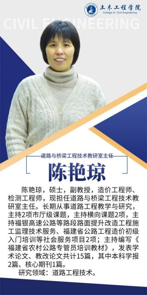 堅持黨建引領(lǐng),扎實(shí)推進(jìn)師資隊伍建設(shè),土木工程學(xué)院黨總支是全省先進(jìn)基層黨組織,第二支部為省級樣板支部,第四黨支部為省“雙帶頭人”教師黨支部書記工作室,并入選全國黨建工作樣板支部。土木工程學(xué)院現(xiàn)有專任教師92人,其中副教授等副高以上職稱教師55人,具有博士學(xué)位教師10人,省級教學(xué)名師1人,省優(yōu)秀教師3人,省高職高專專業(yè)帶頭人1人,專任教師中具備雙師素質(zhì)的達(dá)到95%以上。另有一批專業(yè)領(lǐng)軍人才、大師名匠等組成的兼職教師隊伍,形成了高水平的“雙師雙能”教學(xué)團(tuán)隊。在先進(jìn)基層黨組織示范帶動下,道路與橋梁工程技術(shù)專業(yè)教學(xué)創(chuàng)新團(tuán)隊入選第三批國家級職業(yè)教育教師創(chuàng)新團(tuán)隊立項(xiàng)(培育)建設(shè)單位名單,團(tuán)隊成員參與獲得國家級教學(xué)成果二等獎2項(xiàng),福建省教學(xué)成果特等獎1項(xiàng),一等獎2項(xiàng),教師參加省級以上教學(xué)能力比賽獲一等獎2項(xiàng),二等獎1項(xiàng),三等獎5項(xiàng)。
