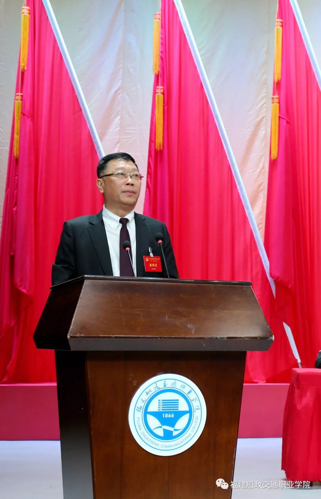 陳國龍副廳長發(fā)表重要講話。他代表省委教育工委、省教育廳對大會的召開表示熱烈的祝賀,充分肯定了學(xué)院的辦學(xué)成就,對大會的召開表達(dá)了良好祝愿,并對即將產(chǎn)生的新一屆黨委提出希望。他表示,省委教育工委、省教育廳將一如既往關(guān)心和支持學(xué)院的改革發(fā)展,希望大家堅(jiān)守教育初心和使命,大力弘揚(yáng)工匠精神、船政精神,不斷提升學(xué)院綜合辦學(xué)實(shí)力,開創(chuàng)更加美好的明天。
