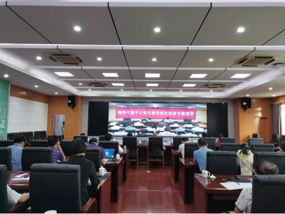 2019年9月27日,省教育廳邀請省委巡視三組副組長、省委組織部干部監(jiān)督室主任曾志斌舉辦領(lǐng)導(dǎo)干部個(gè)人有關(guān)事項(xiàng)報(bào)告制度專題輔導(dǎo)講座,省教育廳設(shè)置主會場,學(xué)院設(shè)置分會場,同步收看輔導(dǎo)講座。學(xué)院領(lǐng)導(dǎo)班子成員、全體處級干部共41人收看。