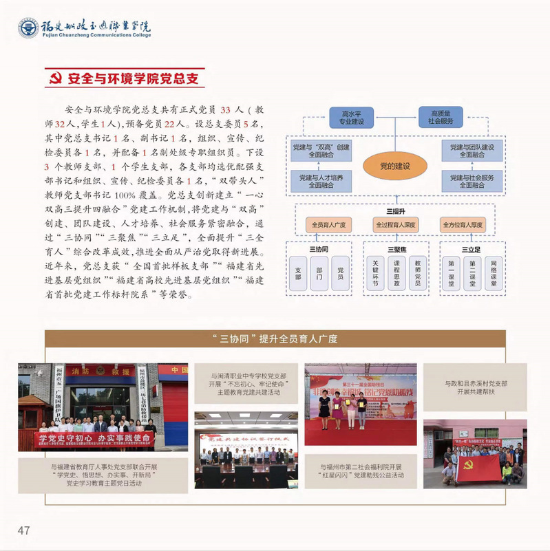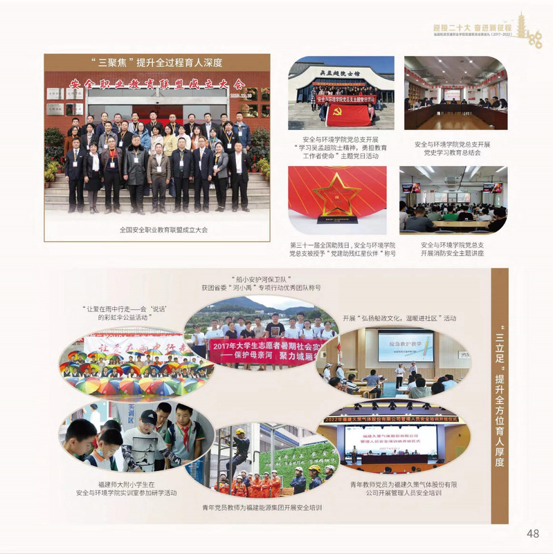 十九大以來,福建船政交通職業(yè)學(xué)院堅(jiān)持以習(xí)近平新時(shí)代中國(guó)特色社會(huì)主義思想為指導(dǎo),堅(jiān)持社會(huì)主義辦學(xué)方向,深入貫徹黨的十九大和十九屆歷次全會(huì)精神,堅(jiān)守“為黨育人、為國(guó)育才”的初心和使命,慎終如始推進(jìn)學(xué)校黨的政治建設(shè)、思想建設(shè)、組織建設(shè)、作風(fēng)建設(shè)、紀(jì)律建設(shè)、制度建設(shè),黨的組織體系和學(xué)校治理體系相得益彰,黨建引領(lǐng)推動(dòng)創(chuàng)新船政、質(zhì)量船政、文化船政協(xié)奏齊鳴,政治生態(tài)、學(xué)術(shù)生態(tài)、文化生態(tài)持續(xù)向好,辦學(xué)效率、辦學(xué)效能、辦學(xué)效益顯著提升!