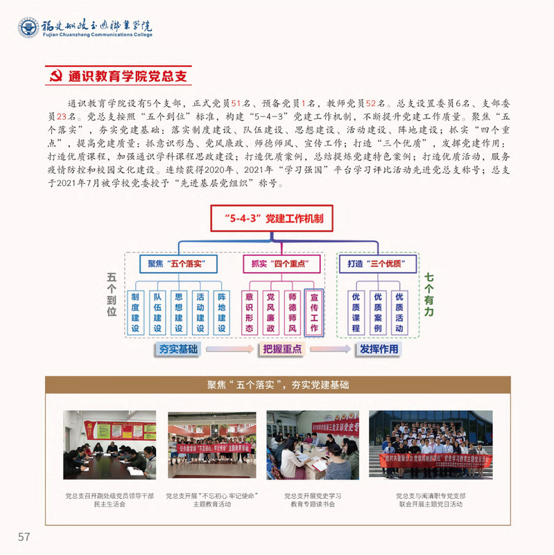 十九大以來(lái),福建船政交通職業(yè)學(xué)院堅(jiān)持以習(xí)近平新時(shí)代中國(guó)特色社會(huì)主義思想為指導(dǎo),堅(jiān)持社會(huì)主義辦學(xué)方向,深入貫徹黨的十九大和十九屆歷次全會(huì)精神,堅(jiān)守“為黨育人、為國(guó)育才”的初心和使命,慎終如始推進(jìn)學(xué)校黨的政治建設(shè)、思想建設(shè)、組織建設(shè)、作風(fēng)建設(shè)、紀(jì)律建設(shè)、制度建設(shè),黨的組織體系和學(xué)校治理體系相得益彰,黨建引領(lǐng)推動(dòng)創(chuàng)新船政、質(zhì)量船政、文化船政協(xié)奏齊鳴,政治生態(tài)、學(xué)術(shù)生態(tài)、文化生態(tài)持續(xù)向好,辦學(xué)效率、辦學(xué)效能、辦學(xué)效益顯著提升!