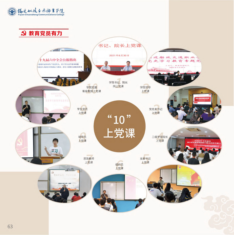 教育黨員有力 今年是黨的二十大召開之年,是學(xué)校深化綜合改革、加快“雙高”建設(shè)的關(guān)鍵年,是續(xù)寫過去5年工作、回首新時(shí)代10年變革的轉(zhuǎn)折年。站在新的歷史起點(diǎn)上,船政交通人將始終沿著習(xí)近平總書記親自為福建擘畫的最美山水圖、沿革船政先賢留下的文化瑰寶、延續(xù)一代代船政交通人接續(xù)奮斗的精神,以飽滿的精神、昂揚(yáng)的斗志、奮進(jìn)的狀態(tài),開啟建設(shè)中國特色高水平高職學(xué)校的新征程,以優(yōu)異成績慶祝黨的二十大勝利召開!