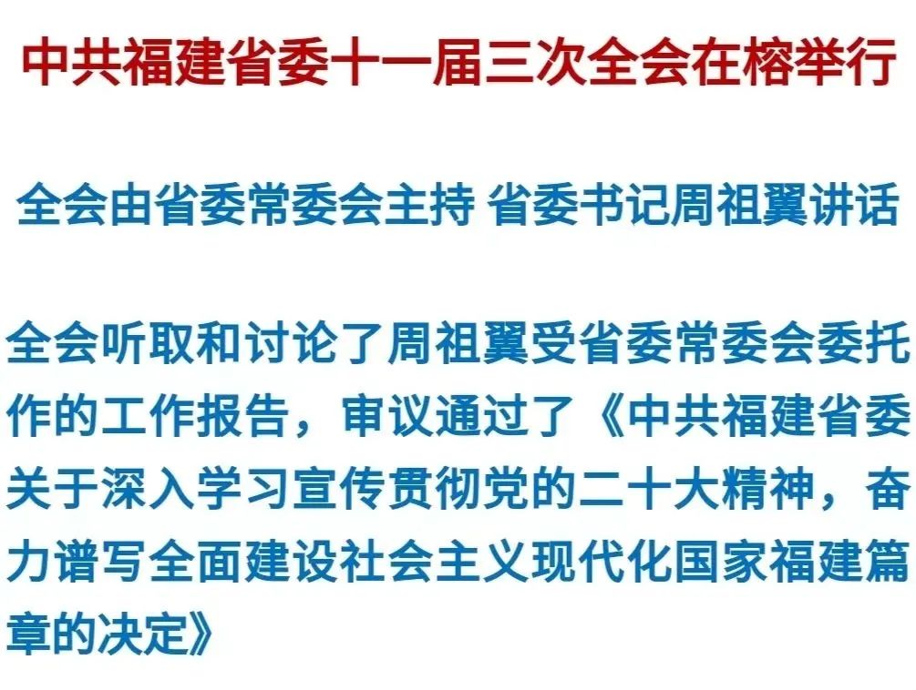 中國共產(chǎn)黨福建省第十一屆委員會第三次全體會議決議(2022年11月25日中國共產(chǎn)黨福建省第十一屆委員會第三次全體會議通過)