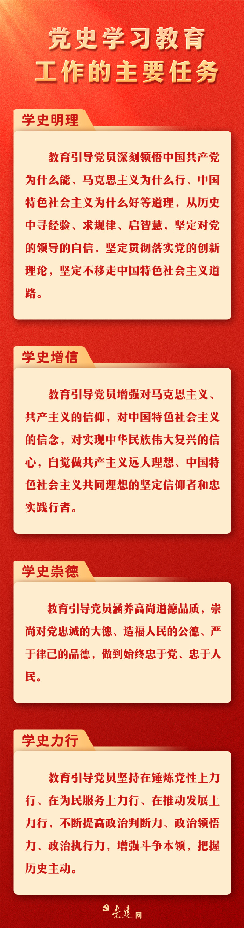 開展黨史學習教育,充分發(fā)揮黨史以史鑒今、資政育人的作用,是黨和國家工作大局中的一件十分重要的工作。近日,中共中央印發(fā)了《黨史學習教育工作條例》(以下簡稱《條例》)?!稐l例》的制定和實施,對于推動黨史學習教育常態(tài)化長效化,推動全黨全社會學好黨史、用好黨史,從黨的歷史中汲取智慧和力量,做到學史明理、學史增信、學史崇德、學史力行,具有重要意義。黨史學習教育工作的主要任務(wù)有哪些,快來一圖學習!