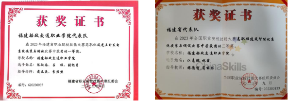 圖4 2023福建省職業(yè)技能大賽高職組風(fēng)光互補發(fā)電系統(tǒng)安裝與調(diào)試團體一等獎及2023年全國職業(yè)院校高職組建筑智能化系統(tǒng)安裝與調(diào)試三等獎