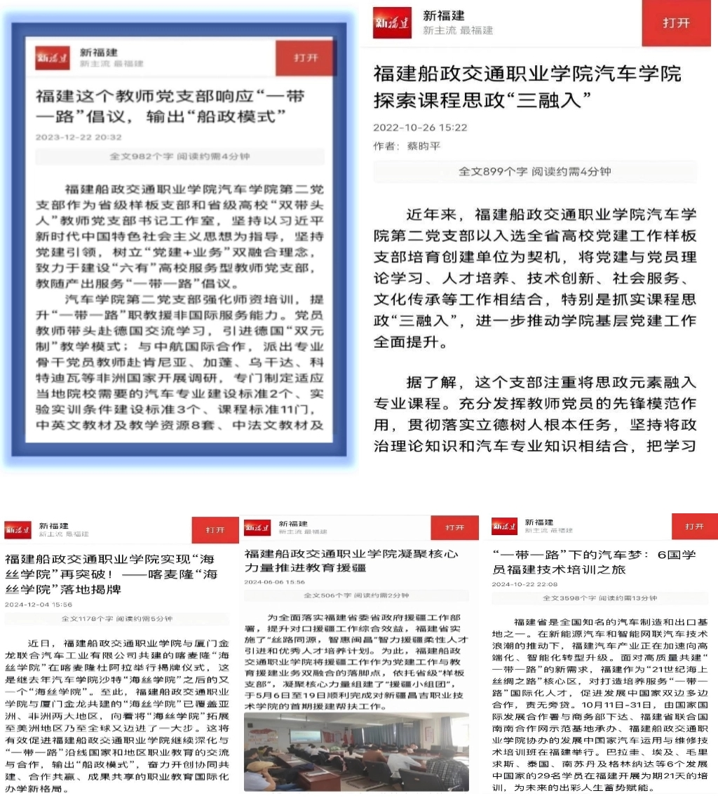 發(fā)揮專業(yè)優(yōu)勢(shì),打造“一帶一路”職教合作標(biāo)桿。黨總支主動(dòng)對(duì)接“一帶一路”職教合作需求,2018年以來(lái),組織黨員骨干教師赴肯尼亞、加蓬等國(guó)開(kāi)展專業(yè)調(diào)研,精準(zhǔn)定制汽車(chē)專業(yè)建設(shè)標(biāo)準(zhǔn)2個(gè)、實(shí)驗(yàn)實(shí)訓(xùn)標(biāo)準(zhǔn)3個(gè),開(kāi)發(fā)中英文教材8套、中法文教材11套,并指導(dǎo)當(dāng)?shù)卦盒I?jí)實(shí)訓(xùn)基地,形成可復(fù)制推廣的職教幫扶方案,《校企攜手打造“一帶一路”職教合作“船政模式”》案例入選國(guó)家級(jí)成果集,彰顯實(shí)踐價(jià)值。協(xié)辦發(fā)展中國(guó)家汽車(chē)運(yùn)用與維修技術(shù)培訓(xùn)班,為巴拉圭、埃及等6國(guó)29名學(xué)員開(kāi)展21天系統(tǒng)培訓(xùn),輸出標(biāo)準(zhǔn)化技術(shù)教學(xué)內(nèi)容,以中國(guó)技術(shù)為發(fā)展中國(guó)家汽車(chē)產(chǎn)業(yè)人才培養(yǎng)帶去新機(jī)遇。