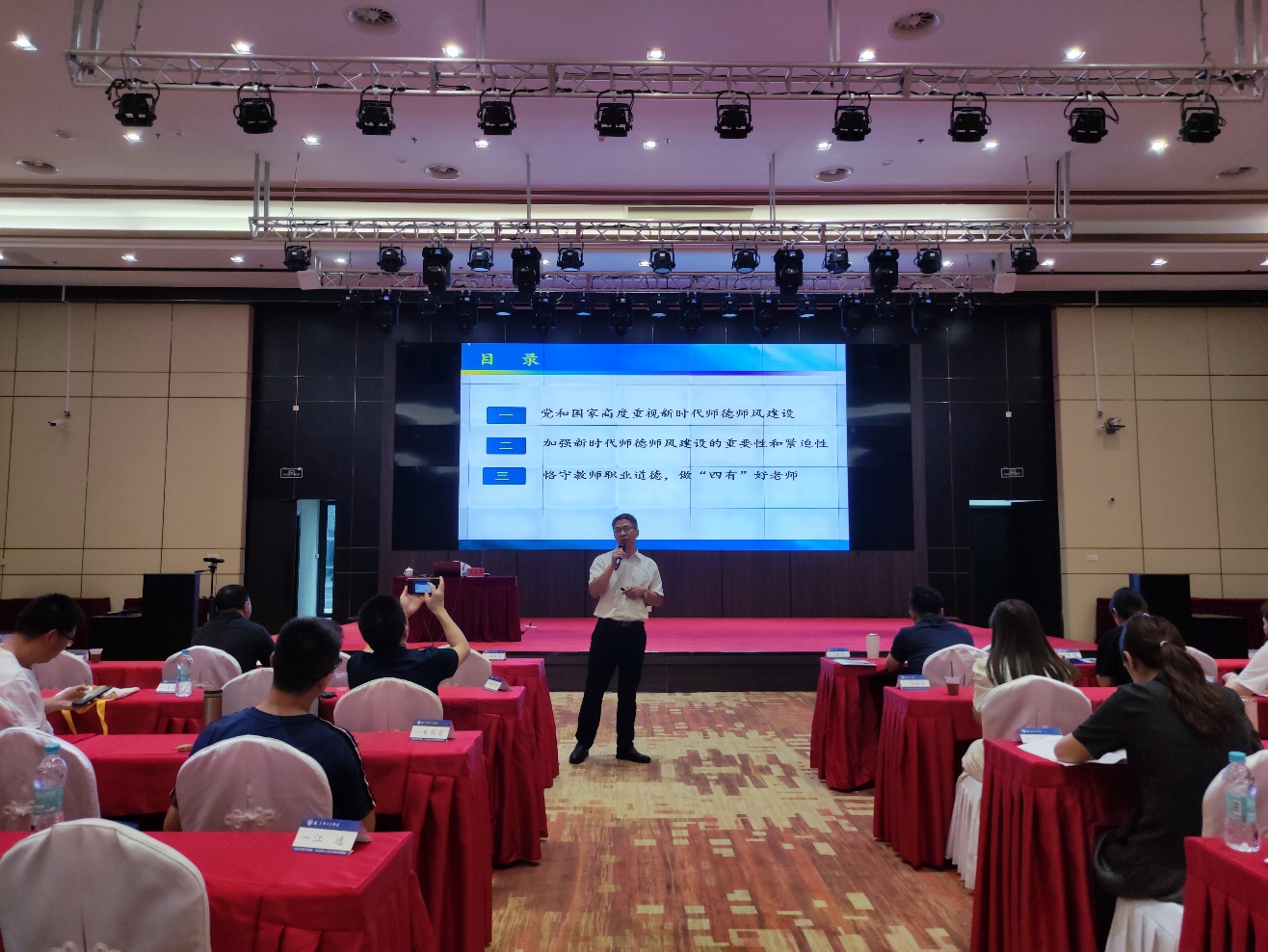 福建教育學(xué)院黨委宣傳部部長 、福建省教工委教育廳師德師風(fēng)大講堂講師團(tuán)成員、福建省第二批名師名校長培養(yǎng)人選導(dǎo)師團(tuán)成員范光基研究員做題為“恪守職業(yè)道德,做‘四有’好老師”專題講座,以大量實(shí)例分析了在黨和國家高度重視新時(shí)代師德師風(fēng)建設(shè)背景下,加強(qiáng)新時(shí)代師德師風(fēng)建設(shè)的重要性和緊迫性,指引學(xué)員們要恪守教師職業(yè)道德,做“四有”好老師。
