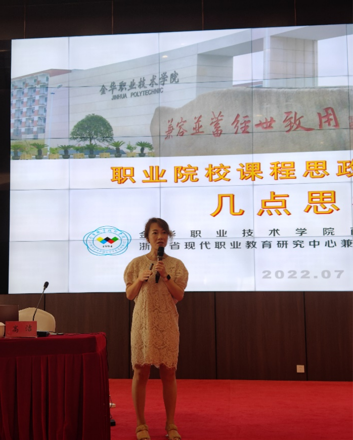 金華職業(yè)技術(shù)學(xué)院商學(xué)院副院長、金華市新世紀(jì)321人才第二層次人才、金華市宣傳文化系統(tǒng)“五個(gè)一批”人才高潔教授以《職業(yè)院校課程思政教學(xué)設(shè)計(jì)》為題,以豐富詳實(shí)的案例向?qū)W員們剖析了在職業(yè)院校課程思政教學(xué)設(shè)計(jì)中應(yīng)該如何重視課程思政的思政味,守牢課程思政的職業(yè)味,做實(shí)課程思政的特色性。