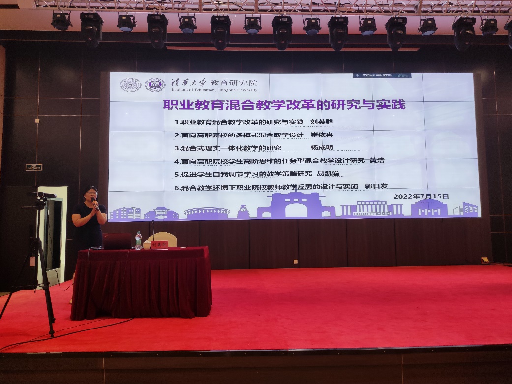 清華大學(xué)計(jì)算機(jī)科學(xué)與技術(shù)博士,清華大學(xué)教育研究院教育技術(shù)研究所高級工程師劉英群率團(tuán)隊(duì)圍繞《職業(yè)教育混合教學(xué)改革的研究與實(shí)踐》專題,分析在職業(yè)教育數(shù)字化轉(zhuǎn)型背景下,職業(yè)院?;旌险n程如何開展教學(xué)實(shí)踐和系統(tǒng)化研究。崔依冉、楊成明、黃浩、易凱諭、郭日發(fā)幾位成員分別就《面向高職院校的多模式混合教學(xué)設(shè)計(jì)》《混合式理實(shí)一體化教學(xué)的研究》《面向高職院校學(xué)生高階思維的任務(wù)型混合教學(xué)設(shè)計(jì)研究》《促進(jìn)學(xué)生自我調(diào)節(jié)學(xué)習(xí)的教學(xué)策略研究》《混合教學(xué)環(huán)境下職業(yè)院校教師教學(xué)反思的設(shè)計(jì)與實(shí)施》分享了其團(tuán)隊(duì)的研究成果。