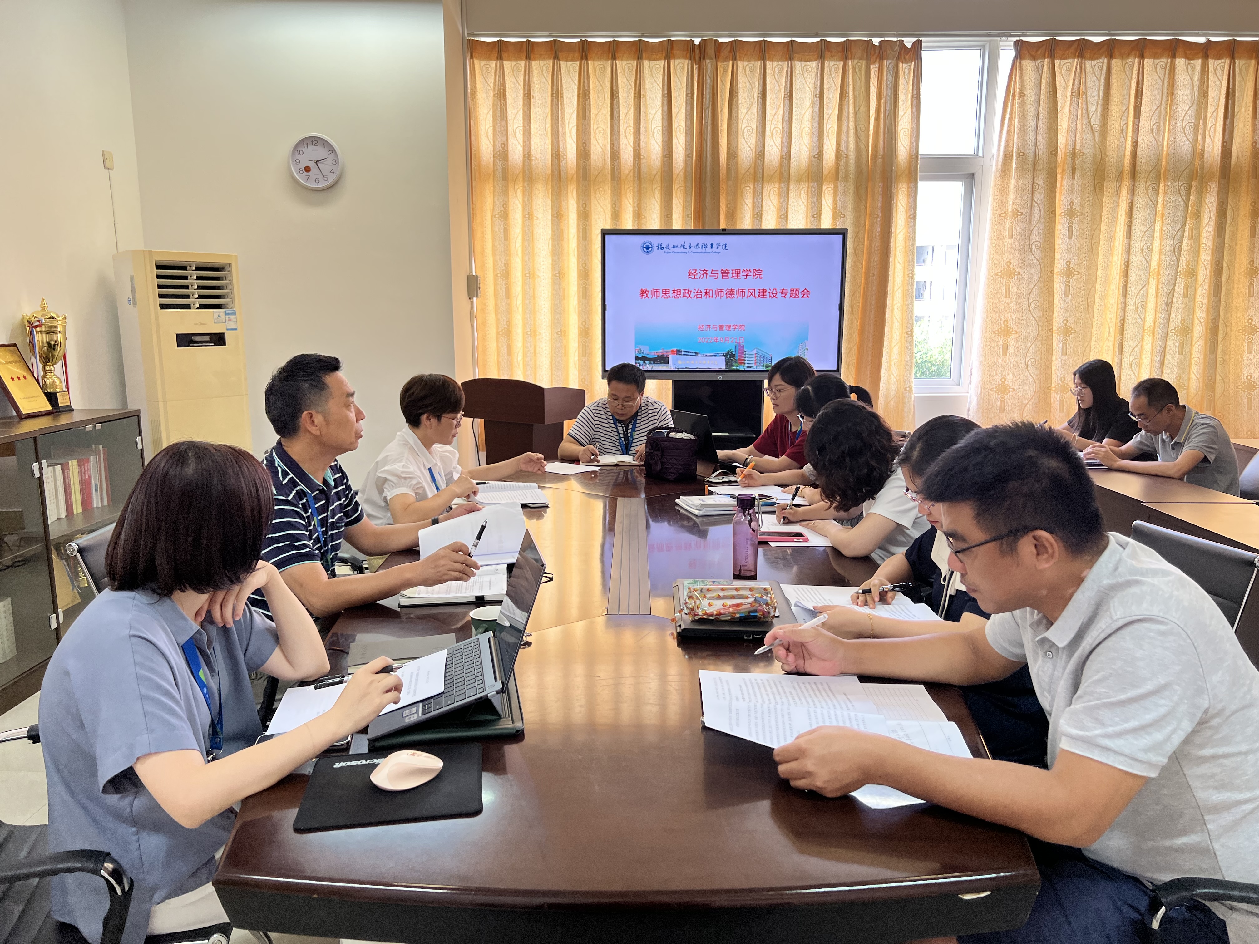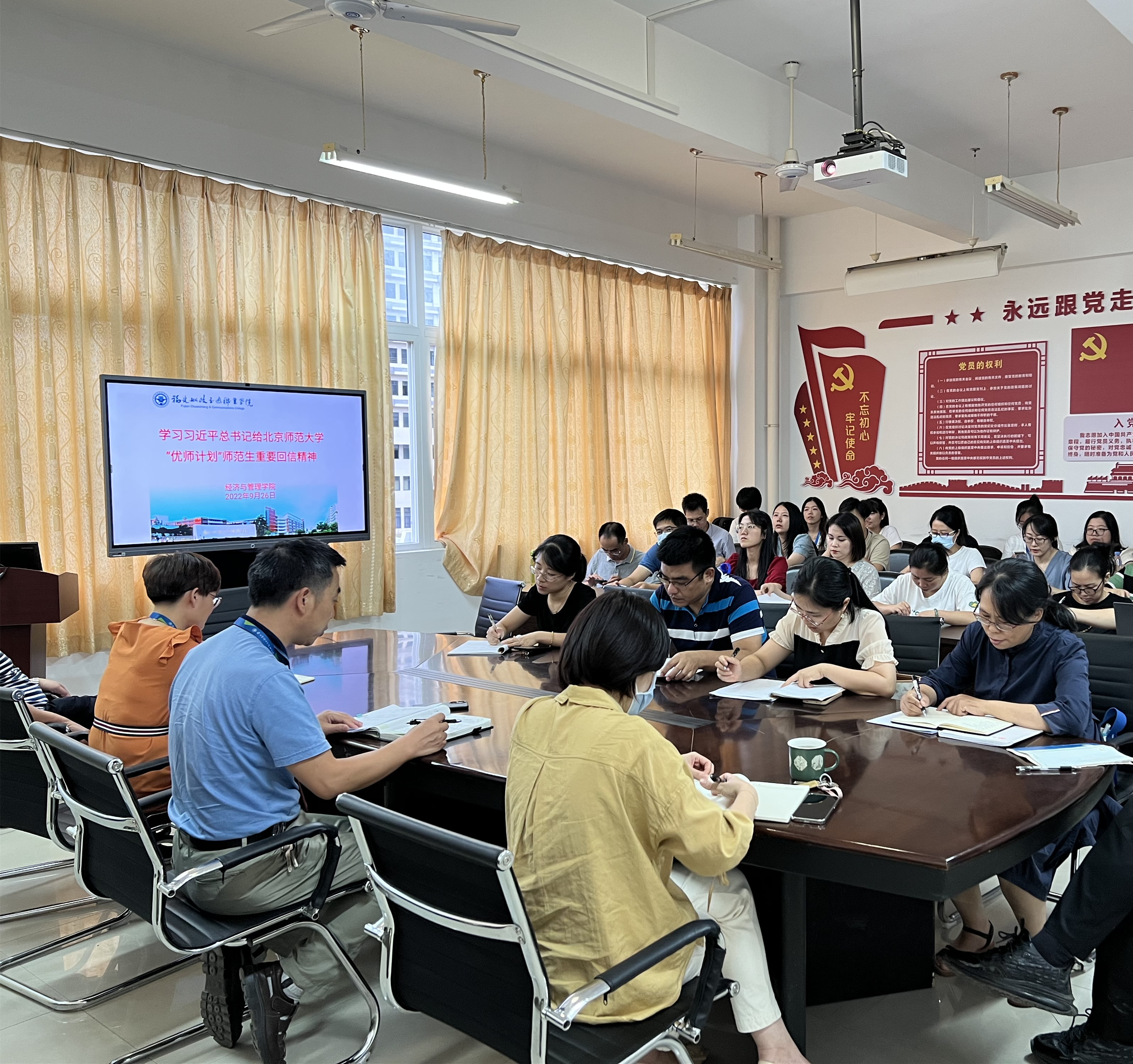 9月21日,經(jīng)濟(jì)與管理學(xué)院黨總支召開加強(qiáng)教師思想政治和師德師風(fēng)建設(shè)專題會,就學(xué)習(xí)貫徹習(xí)近平總書記給“優(yōu)師計劃”師范生重要回信精神動員進(jìn)行動員部署,要求各支部、各教研室、實(shí)訓(xùn)中心將學(xué)習(xí)落細(xì)、落實(shí)。