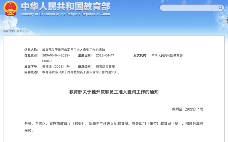 近日,教育部印發(fā)《關于推開教職員工準入查詢工作的通知》(以下簡稱《通知》)。《通知》要求,中小學校和高等學校擬聘用教師在入職前須查詢《關于建立教職員工準入查詢性侵違法犯罪信息制度的意見》《關于落實從業(yè)禁止制度的意見》規(guī)定的性侵違法犯罪信息和教師法、《教師資格條例》規(guī)定的已納入教師資格限制庫的喪失、撤銷教師資格信息。