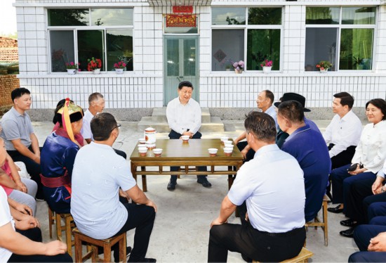 2019年7月15日至16日,中共中央總書記、國(guó)家主席、中央軍委主席習(xí)近平在內(nèi)蒙古考察并指導(dǎo)開展“不忘初心、牢記使命”主題教育。這是15日下午,習(xí)近平在赤峰市喀喇沁旗河南街道馬鞍山村村民張國(guó)利家,同基層干部群眾代表座談交流。 新華社記者 謝環(huán)馳/攝