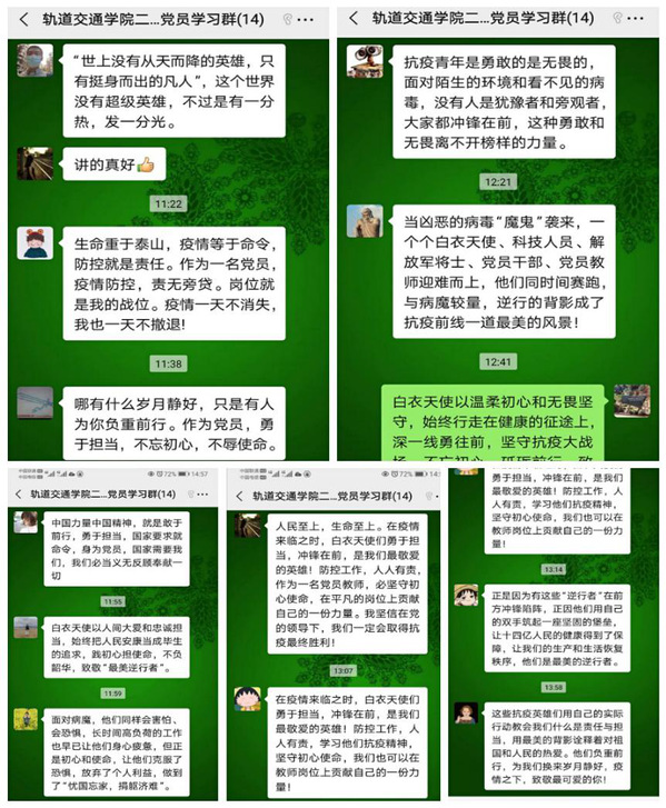 在全國人民的共同努力下疫情得到了控制,我們迎來期盼已久的復(fù)學(xué)復(fù)課,作為軌道交通學(xué)院全體黨員將以這些新時(shí)代的戰(zhàn)“疫英雄為榜樣,以更加飽滿的精神投入到教書育人工作中,認(rèn)真履職盡責(zé)、主動(dòng)當(dāng)擔(dān)作為,不忘初心、牢記使命,為“雙高”建設(shè)貢獻(xiàn)自己應(yīng)有的力量。