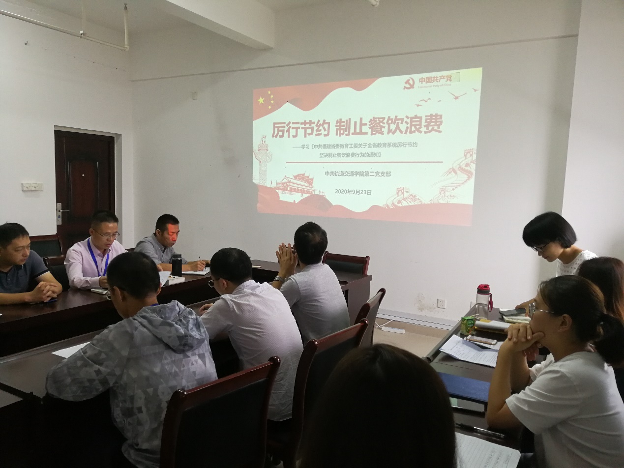 9月23日下午13:30,軌道交通學(xué)院第二黨支部全體黨員在圖書館11樓會(huì)議室開展了以“厲行勤儉節(jié)約、反對(duì)餐飲浪費(fèi)”為主題的黨日活動(dòng),支部書記陳天炎同志主持了本次黨日活動(dòng)。