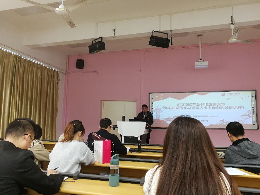 活動中,全體黨員干部深入學(xué)習(xí)了習(xí)近平總書記重要文章《思政課是落實立德樹人根本任務(wù)的關(guān)鍵課程》,理解了教育是民族振興、社會進(jìn)步的重要基石。對青年大學(xué)生的思政教育對提高人民綜合素質(zhì)、促進(jìn)人民的全面發(fā)展、增強(qiáng)中華民族創(chuàng)新發(fā)展的綜合能力、實現(xiàn)中華民族偉大復(fù)興都具有著重要意義,每名黨員結(jié)合自身情況談了自己的感想,并做出把思政教育融入專業(yè)課課堂的承諾。