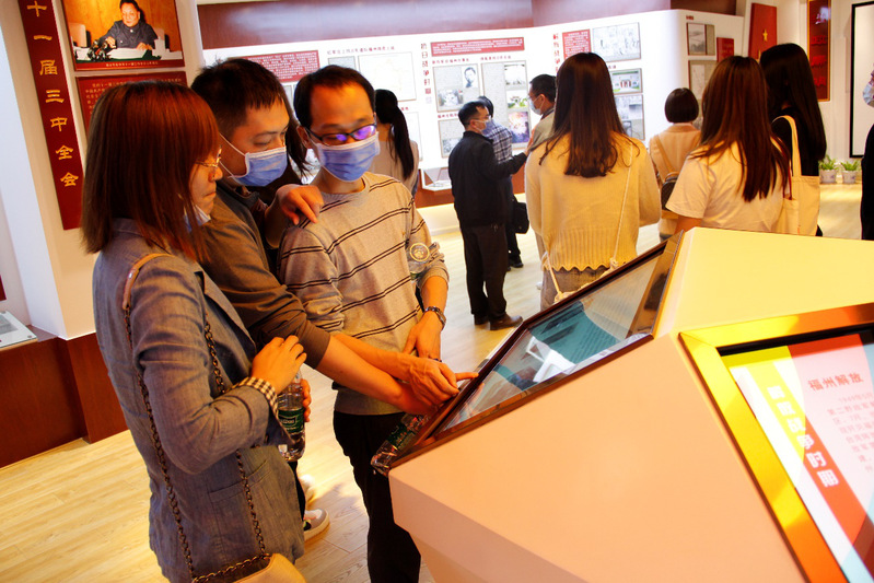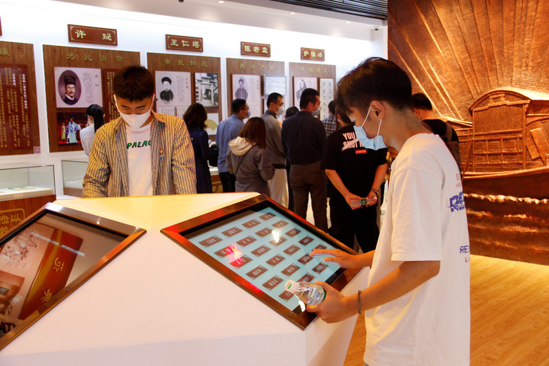 進入黨史廳和勤廉館,首先看到是鐫刻《共產(chǎn)黨宣言》的浮雕屏風。在這里,大家體驗了“體感翻頁”的樂趣,回顧了中共黨史尤其是福州地方黨史重要事件和重要人物,了解了王荷波等9位福州歷史名人勤廉事跡,觀看了《人民領(lǐng)袖》紀錄短片,通過展廳中心的觸摸屏幕進行答題等。
