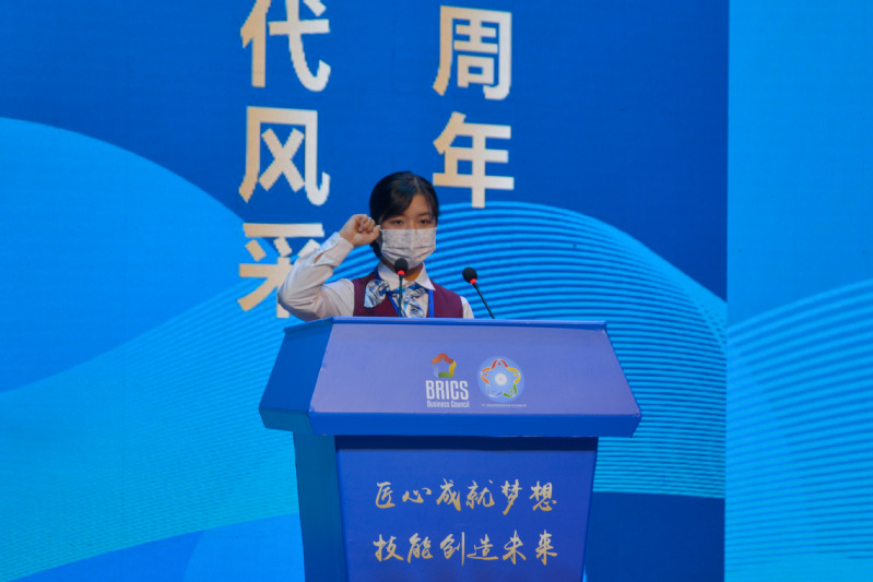 金磚國(guó)家工商理事會(huì)(中方)技能發(fā)展工作組組長(zhǎng)、大賽組委會(huì)執(zhí)委會(huì)主席劉振英博士發(fā)表講話(huà)。他指出,金磚大賽旨在為金磚國(guó)家建立人才選拔通道,提升人才培養(yǎng)能力,服務(wù)先進(jìn)制造領(lǐng)域;舉辦金磚大賽城軌服務(wù)員賽項(xiàng)是壯大高素質(zhì)技能人才隊(duì)伍、服務(wù)交通強(qiáng)國(guó)建設(shè)、推進(jìn)國(guó)際交流的切實(shí)舉措。他提到,承辦方福建船政交通職業(yè)學(xué)院辦學(xué)歷史悠久、育人成效顯著、交通運(yùn)輸特色鮮明、國(guó)際交流佳訊頻傳,是中國(guó)特色高水平高職學(xué)校建設(shè)單位,“1+X”證書(shū)制度試點(diǎn)數(shù)、技能競(jìng)賽成績(jī)居于全國(guó)前列,辦賽基礎(chǔ)良好,定能呈現(xiàn)一場(chǎng)公平、安全的賽事,為來(lái)自行業(yè)、院校的選手提供廣闊平臺(tái)。