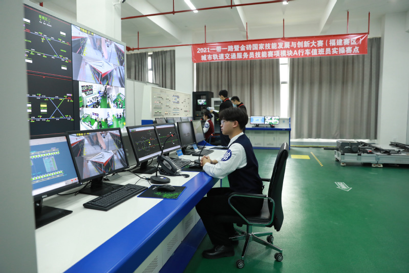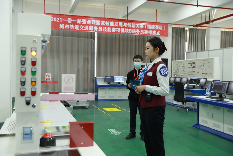 2021年11月27日上午,2021一帶一路暨金磚國(guó)家技能發(fā)展與技術(shù)創(chuàng)新大賽城市軌道交通服務(wù)員技能賽項(xiàng)(福建賽區(qū))預(yù)賽開(kāi)幕式在福建船政交通職業(yè)學(xué)院文體中心隆重舉行。