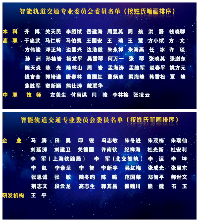 (第三屆智能軌道交通專業(yè)委員會委員名單)