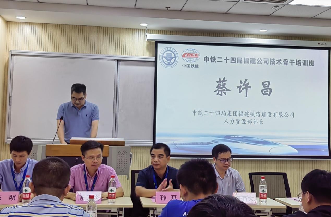 隨后,中鐵二十四局集團(tuán)福建公司人力資源部部長蔡許昌代表中鐵二十四局集團(tuán)向培訓(xùn)班的順利開班表示熱烈的祝賀,同時介紹了中鐵二十四局集團(tuán)福建公司的相關(guān)情況,并要求學(xué)員在培訓(xùn)期間安排好各項工作,學(xué)習(xí)好培訓(xùn)內(nèi)容,掌握好各項技能,務(wù)必珍惜此次培訓(xùn)機(jī)會,順利通過此次技術(shù)骨干培訓(xùn)班的考核。