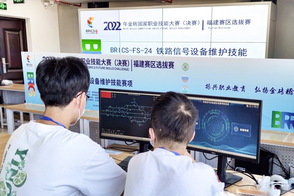 10月11日,在金磚國家職業(yè)技能大賽組委會、金磚國家工商理事會技能發(fā)展工作組和賽項技術(shù)支持單位友道科技有限公司的大力支持下,2022金磚國家職業(yè)技能大賽(決賽)福建省選拔賽——鐵路信號設(shè)備維護(hù)技能大賽通過“線上+線下”的方式在我校順利舉辦。來自福建船政交通職業(yè)學(xué)院、廈門城市職業(yè)學(xué)院、福州職業(yè)技術(shù)學(xué)院、福建工業(yè)學(xué)校等6所院校的8支參賽隊伍參與了大賽角逐。我校軌道交通學(xué)院代表隊榮獲第一名的好成績,成功晉級國賽。