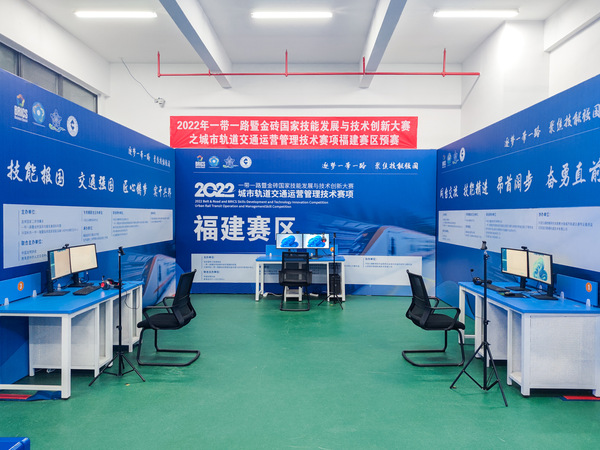 2022年12月8日~9日,2022一帶一路暨金磚國家技能發(fā)展與技術(shù)創(chuàng)新大賽之城市軌道交通運(yùn)營管理技術(shù)賽項(xiàng)福建賽區(qū)總決賽在福建船政交通職業(yè)學(xué)院成功舉辦。福建船政交通職業(yè)學(xué)院黨委委員、副校長(zhǎng)張祖柱,鄭州捷安高科股份有限公司副總經(jīng)理周松,福州地鐵集團(tuán)有限公司副經(jīng)理任延會(huì),福建省職業(yè)教育中心校企合作部副主任毛行靜,福建船政交通職業(yè)學(xué)院教務(wù)處處長(zhǎng)陳朝慰,福建船政交通職業(yè)學(xué)院軌道交通學(xué)院黨總支書記孫基,福建船政交通職業(yè)學(xué)院軌道交通學(xué)院副院長(zhǎng)陳宏意及各參賽院校代表通過線上線下的方式參加開幕式,軌道交通學(xué)院院長(zhǎng)陳天炎主持開幕式。