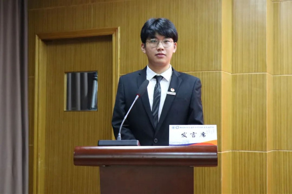 老生代表何智銘回顧并分享了入學(xué)以來在校經(jīng)歷。希望攜手新同學(xué)共同做創(chuàng)造未來的學(xué)習(xí)者、找到熱愛的方向、與祖國和民族同心同行,在“青春的賽道”上跑出當(dāng)代青年的最好成績。