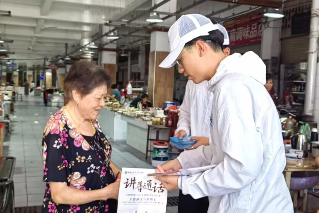 “民族團結(jié)一家親”青軌社會實踐隊為推動國家通用語言文字使用,鑄牢中華民族共同體意識,也借此實踐機會向青峰村的當(dāng)?shù)卮迕裢茝V普通話,對于加強各民族交往交流交融、鑄牢中華民族共同體意識有著深遠的意義。