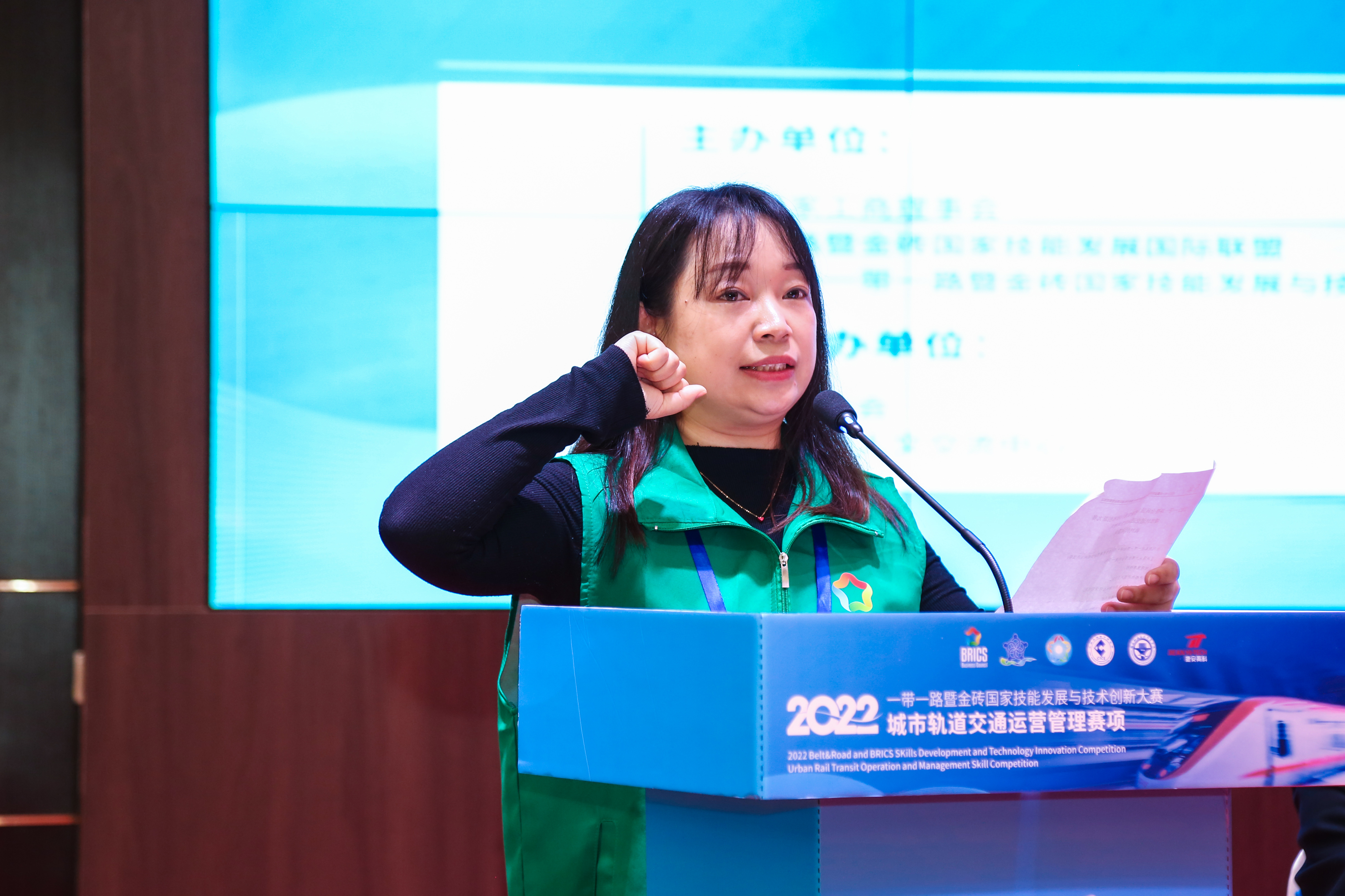 賽項(xiàng)總指導(dǎo)、金磚國(guó)家工商理事會(huì)(中方)技能發(fā)展工作組組長(zhǎng)、“一帶一路”暨金磚國(guó)家技能發(fā)展國(guó)際聯(lián)盟理事長(zhǎng)、金磚國(guó)家技能發(fā)展與技術(shù)創(chuàng)新大賽組委會(huì)執(zhí)委會(huì)主席、中國(guó)科協(xié)“一帶一路”暨金磚國(guó)家技能發(fā)展與技術(shù)創(chuàng)新培訓(xùn)中心主任、廈門市金磚未來技能發(fā)展與技術(shù)創(chuàng)新研究院院長(zhǎng)劉振英對(duì)本次大賽的成功開幕表示祝賀!向精心籌備此次競(jìng)賽的福建船政交通職業(yè)學(xué)院、鄭州捷安高科股份有限公司各級(jí)領(lǐng)導(dǎo)、專家、老師、同學(xué)們的辛勤付出以及大力支持表示衷心的感謝!同時(shí)希望各參賽院校、合作伙伴能夠繼續(xù)積極參與金磚技能組各項(xiàng)國(guó)際合作項(xiàng)目,促進(jìn)校企合作,深化產(chǎn)教融合,共同助力高水平教育對(duì)外開放,并預(yù)祝城市軌道交通運(yùn)營(yíng)管理賽項(xiàng)全國(guó)總決賽圓滿成功!